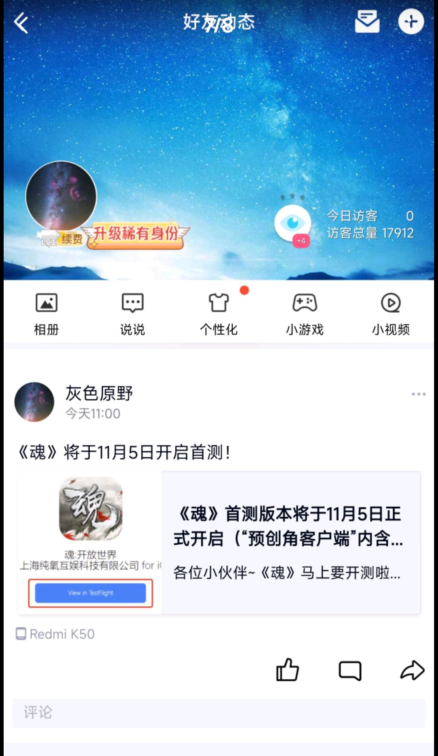 我来参与《魂》11月5日的首测啦 ID:165162394