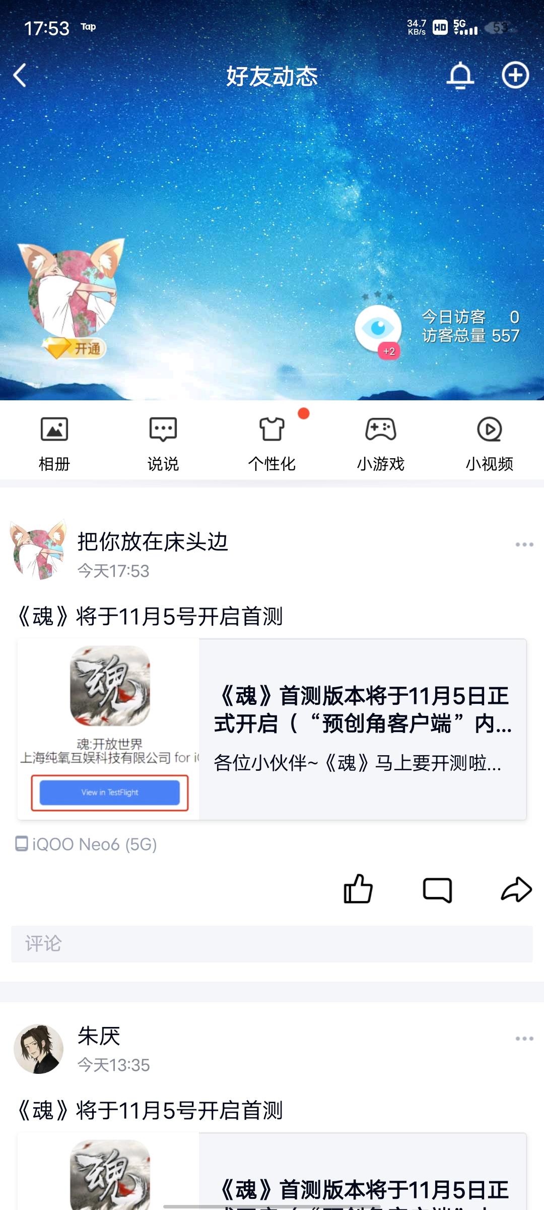 我来参与《魂》11月5日的首测啦 ID:165162394