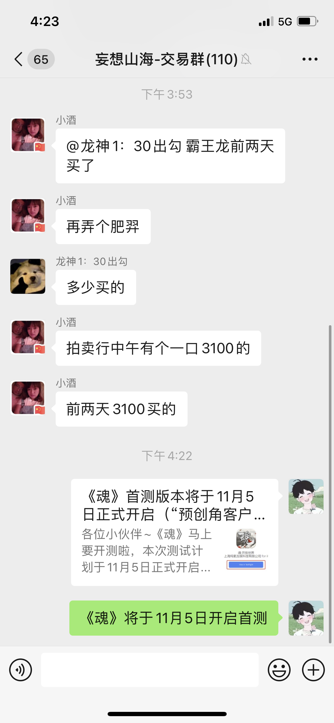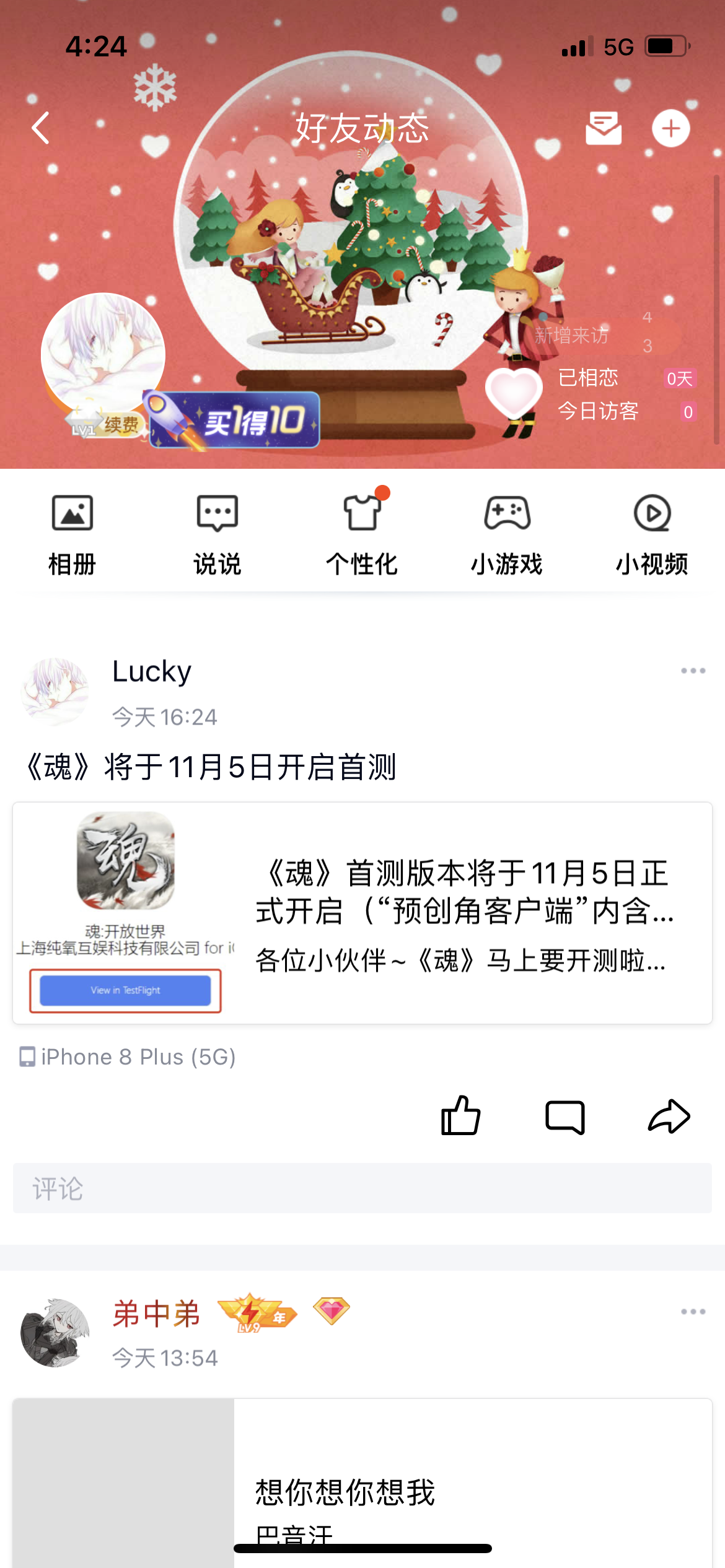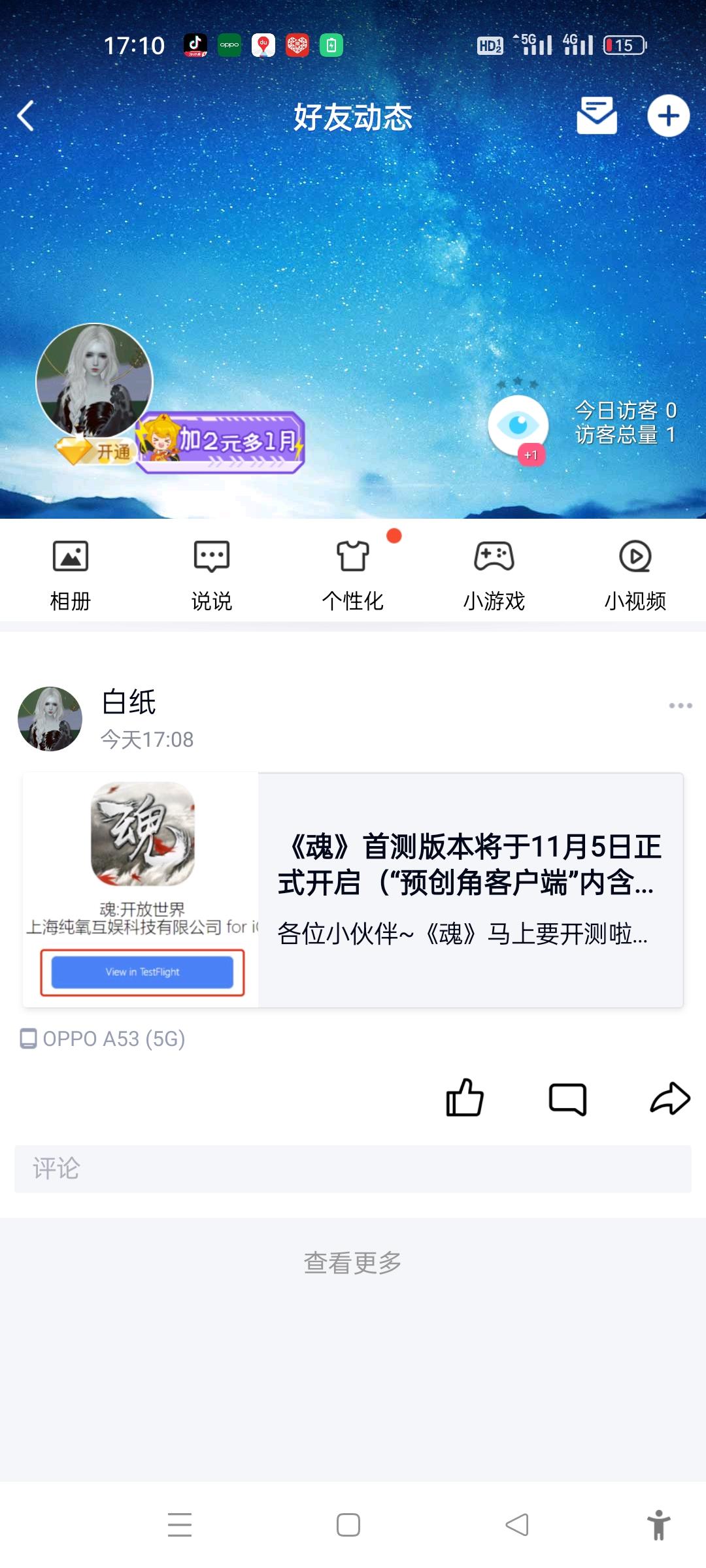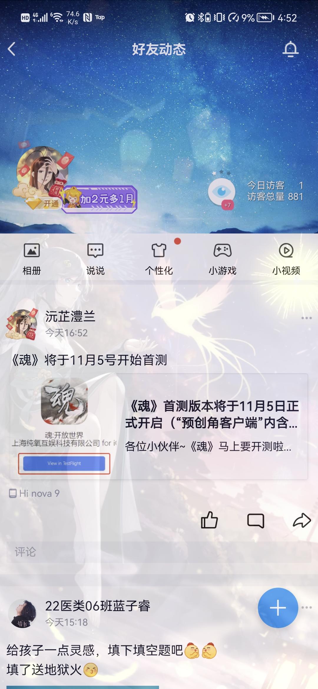 我来参加《魂》11月5号的首测啦。