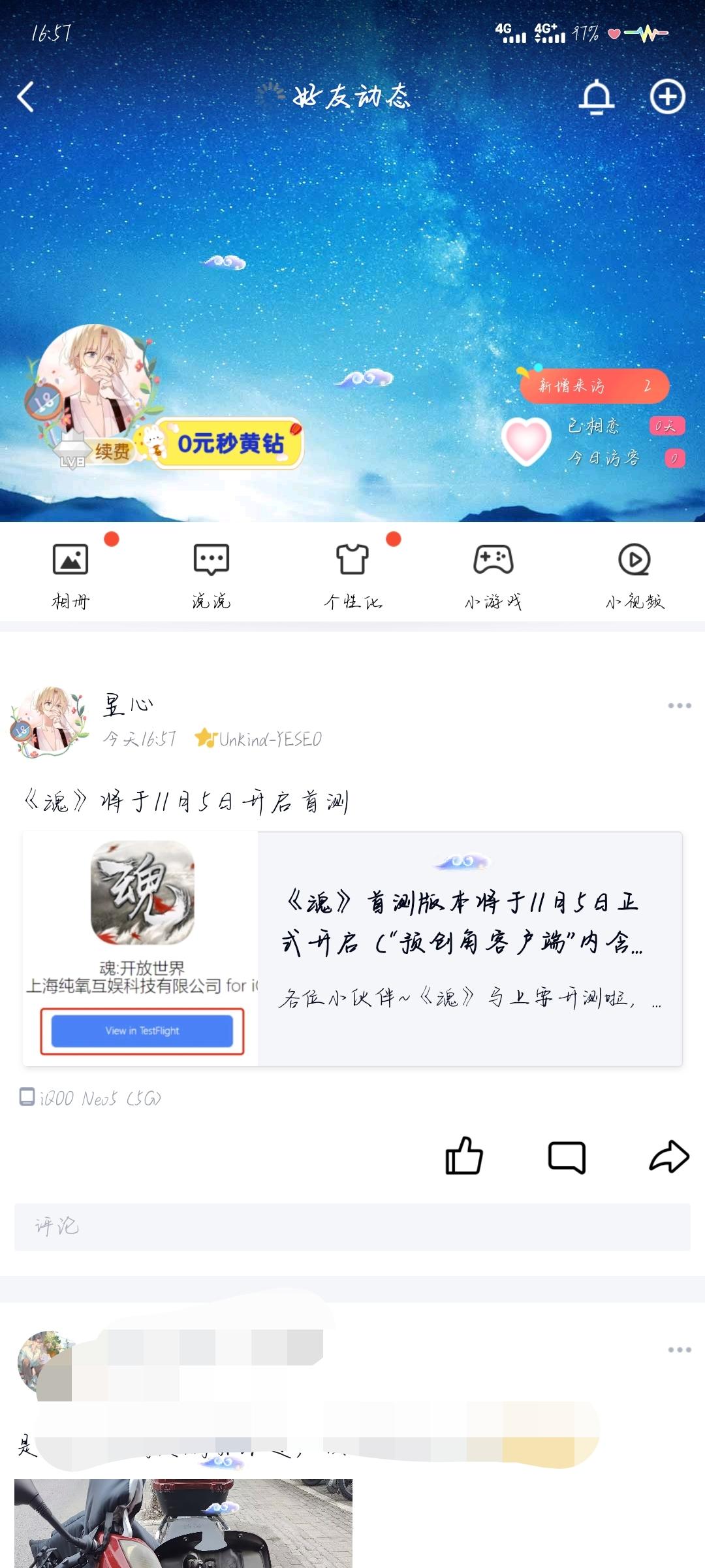 我来参与《魂》11月5日的首测啦,互扫