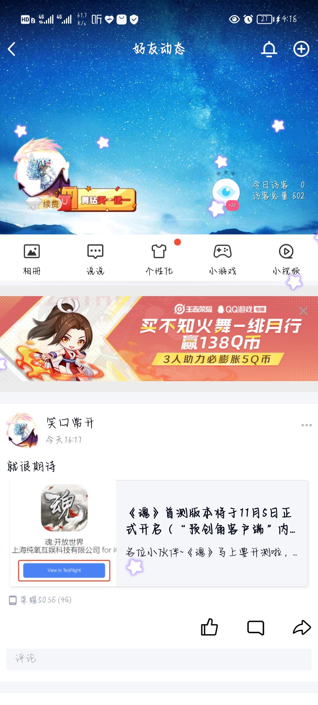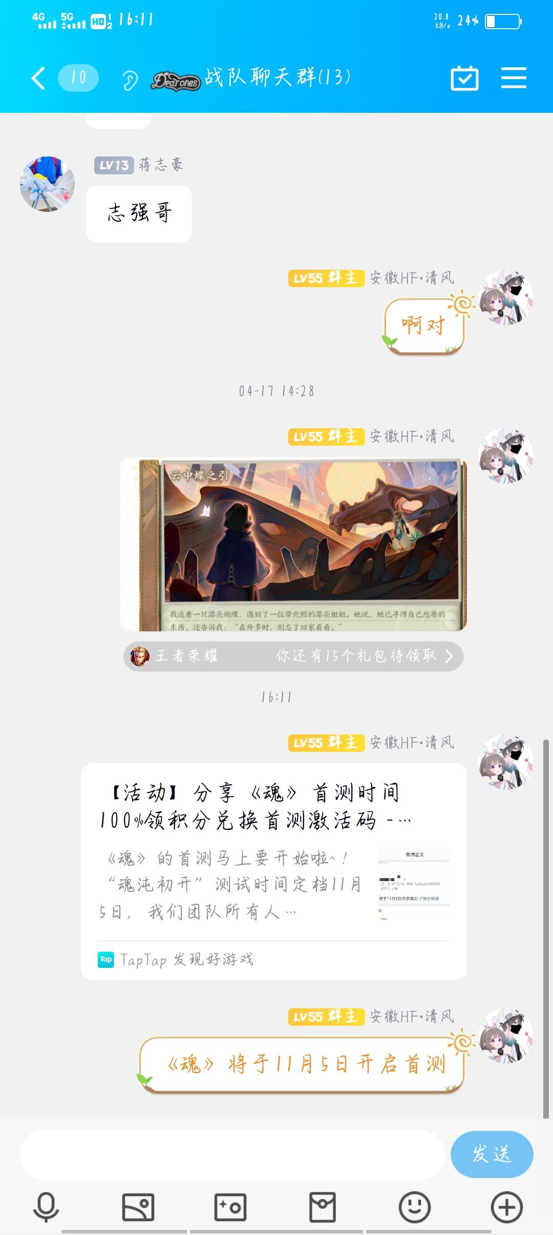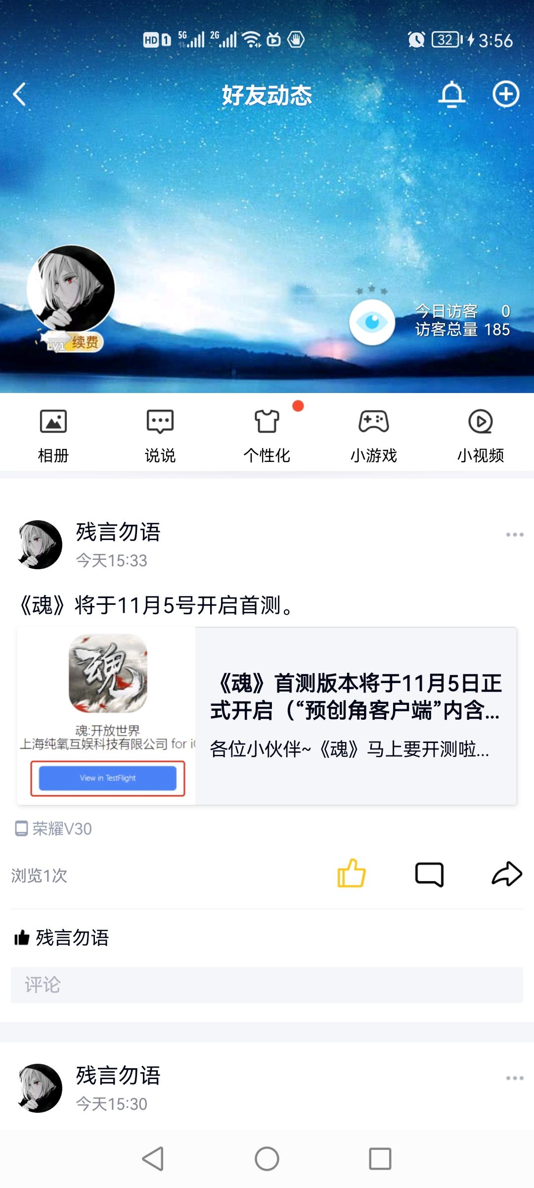 我来参与《魂》11月5日的首测啦!用户号:165159021(安卓)