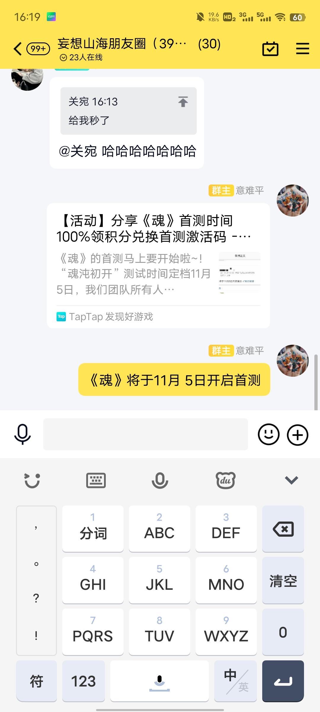 【《魂》首测版本将于11月5日正式开启(“预创角客户端”内含首测激活码发放活动)】那么久了,希望官方大大能给个吧😊