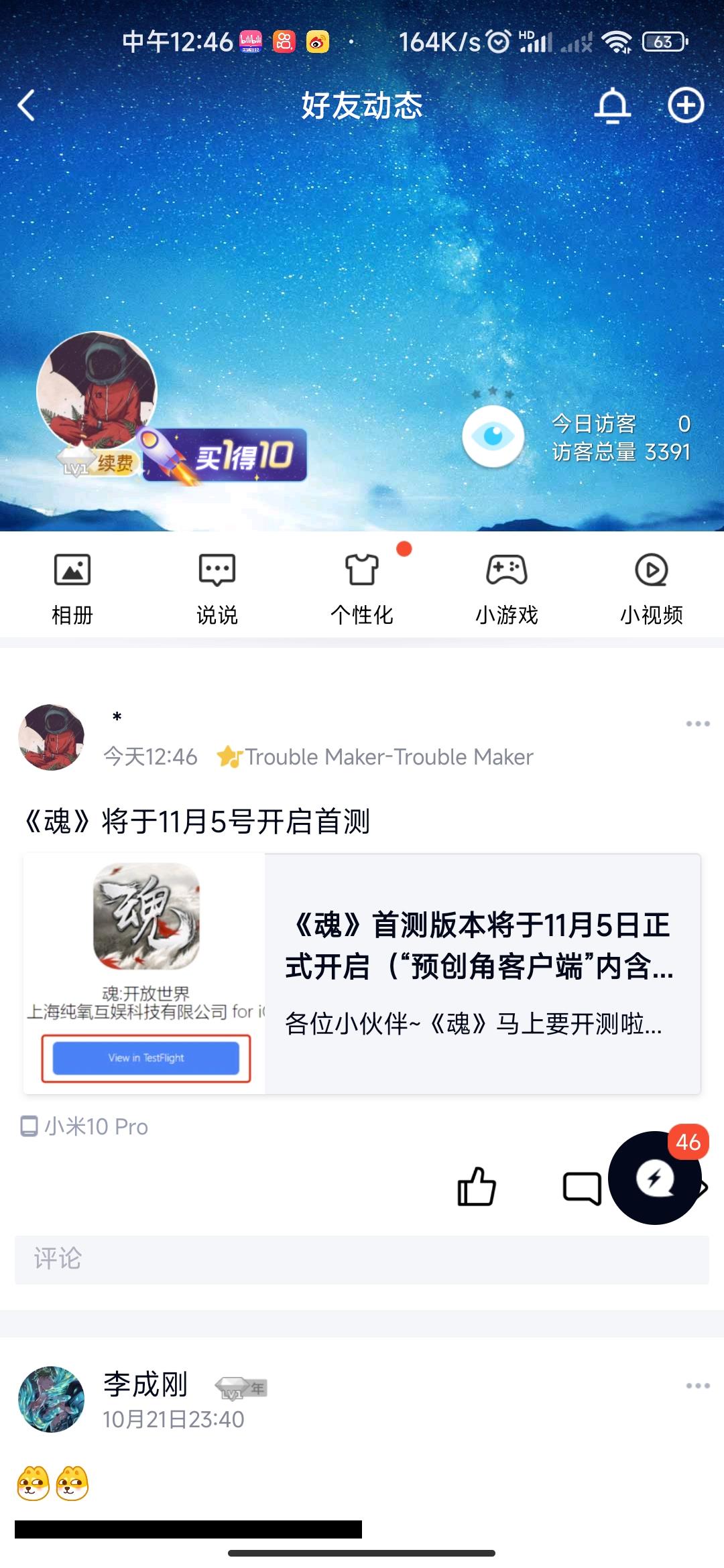 我来参与《魂》11月5日的首测啦! 用户号:165157449