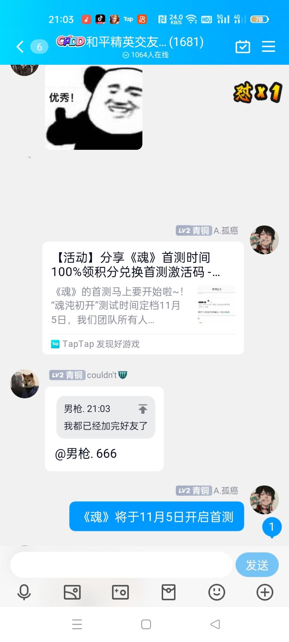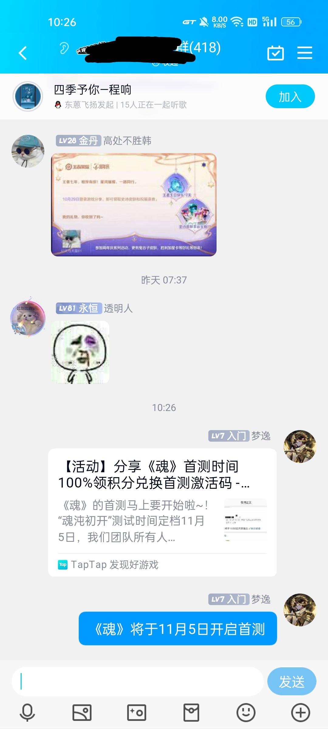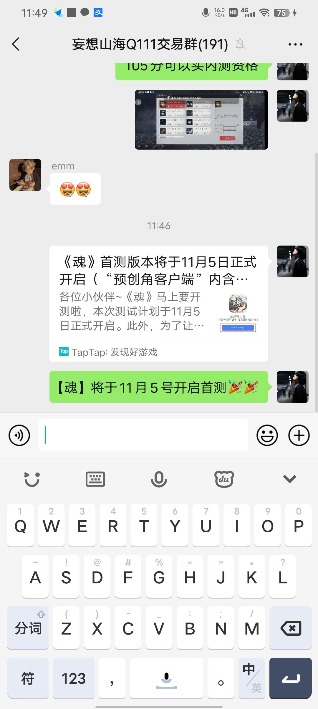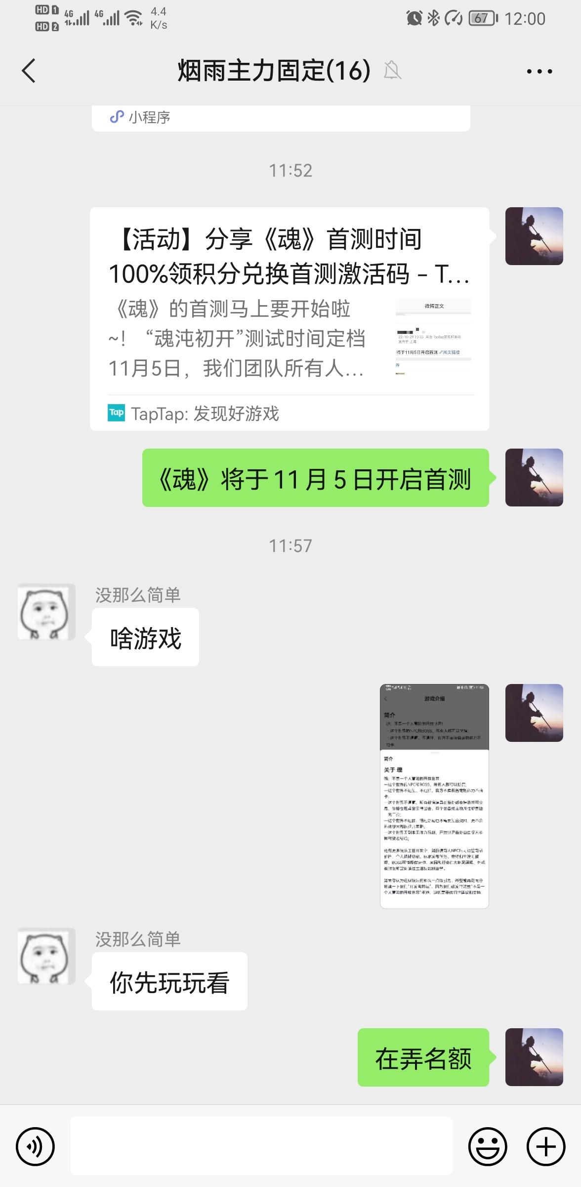 我来参与《魂》11月5日的首测啦 Tap:443510675 用户号:165156396