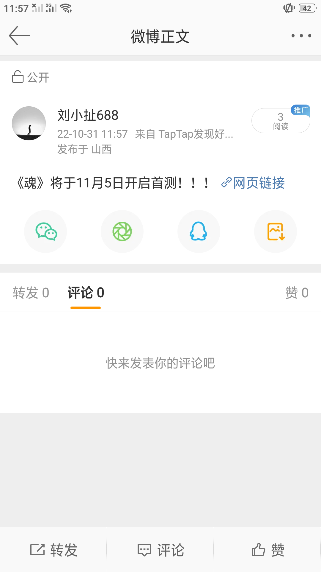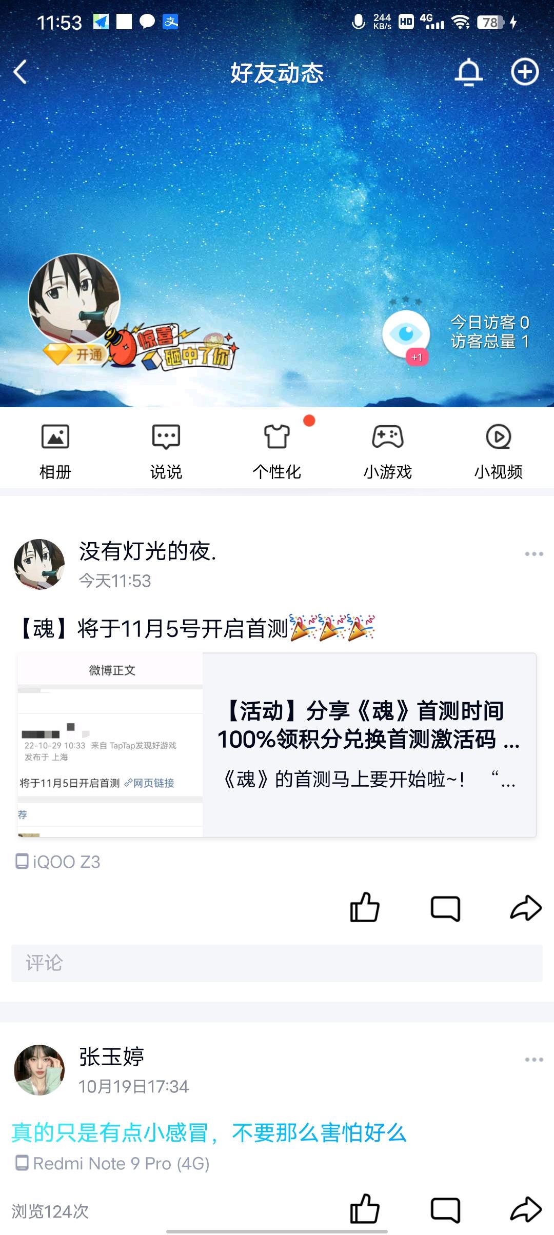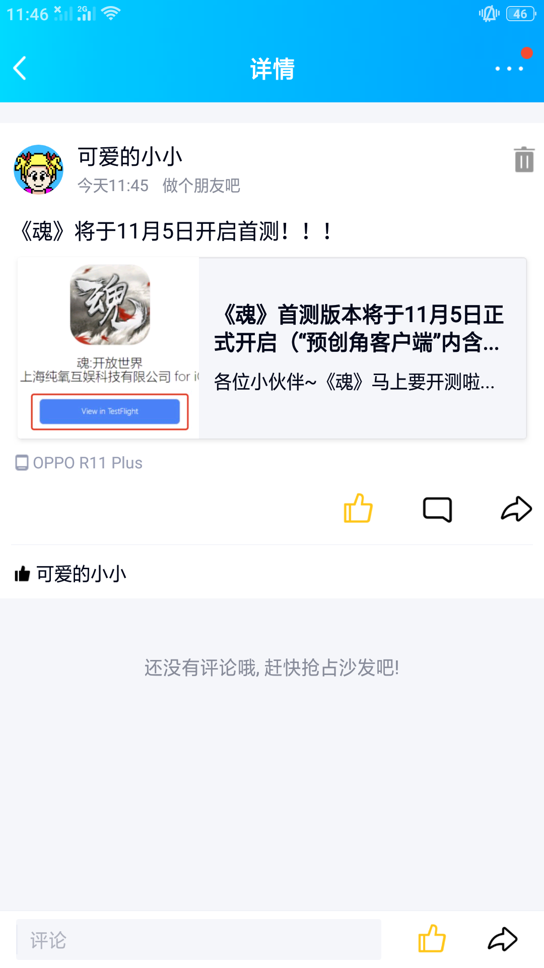 我来参加与《魂》的11月5日的首测啦