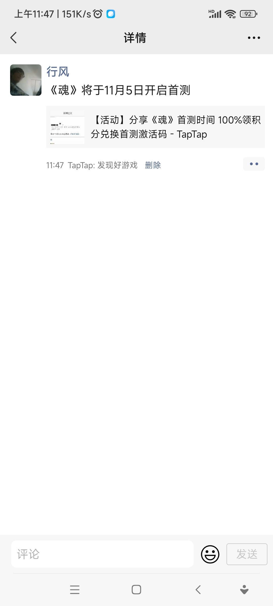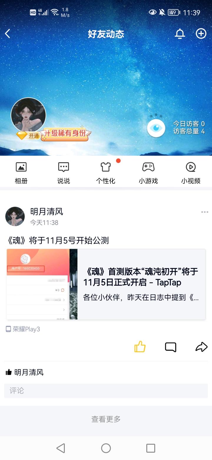 我来参与《魂》11月5日的首测啦用户号134725433