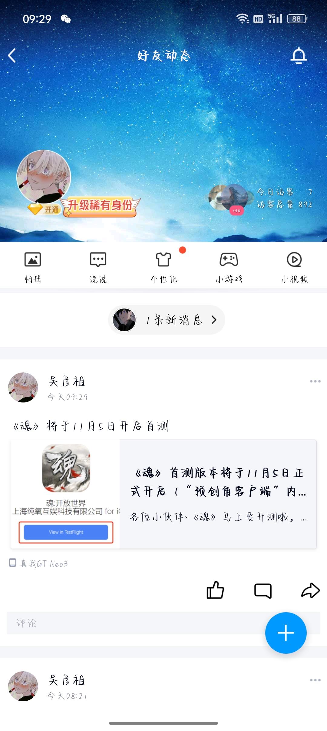 我来参与《魂》11月5日的首测啦用户号:165154735