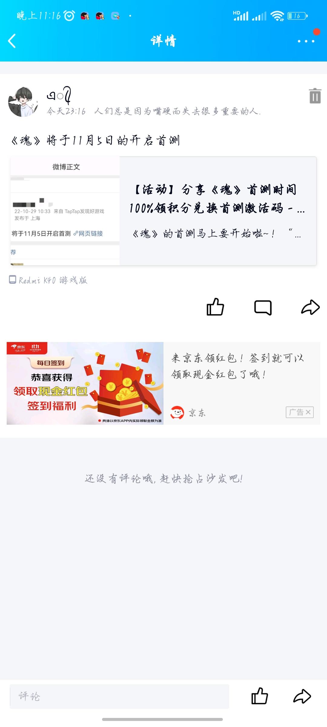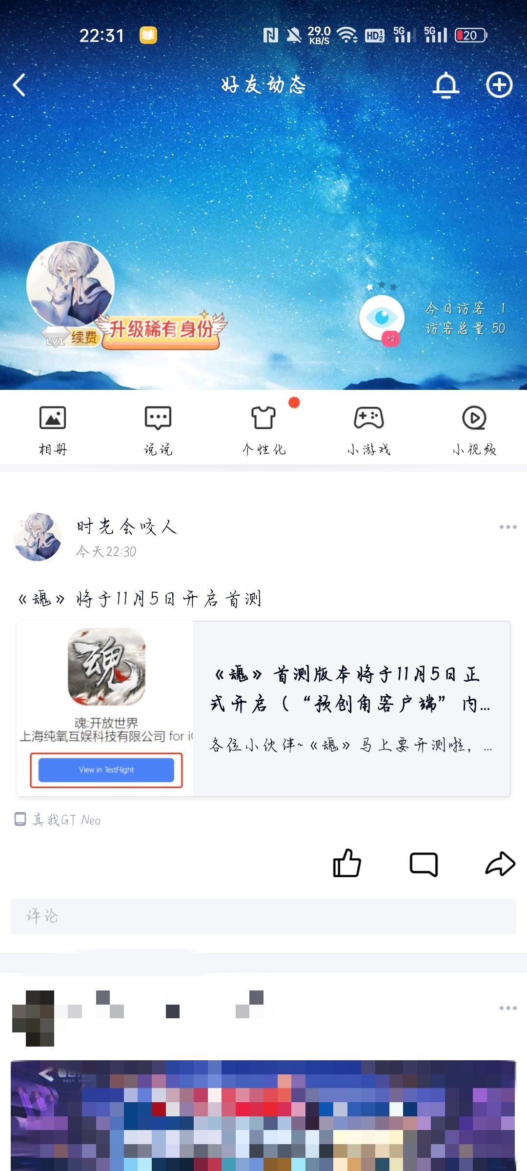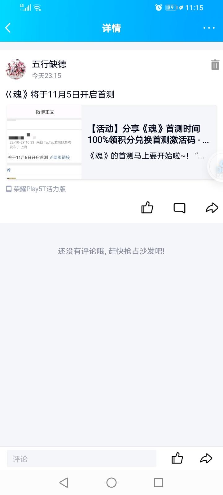 我来参与《魂》11月5日的首测啦 ID:164999757