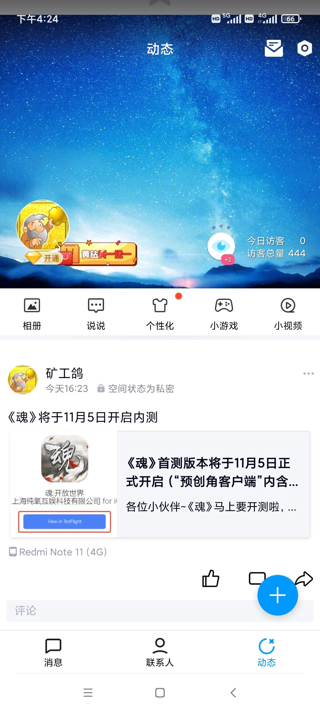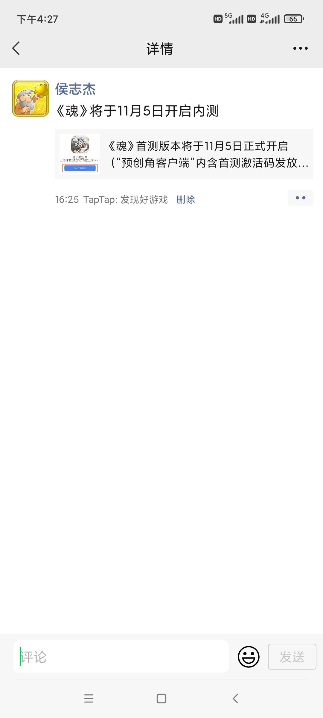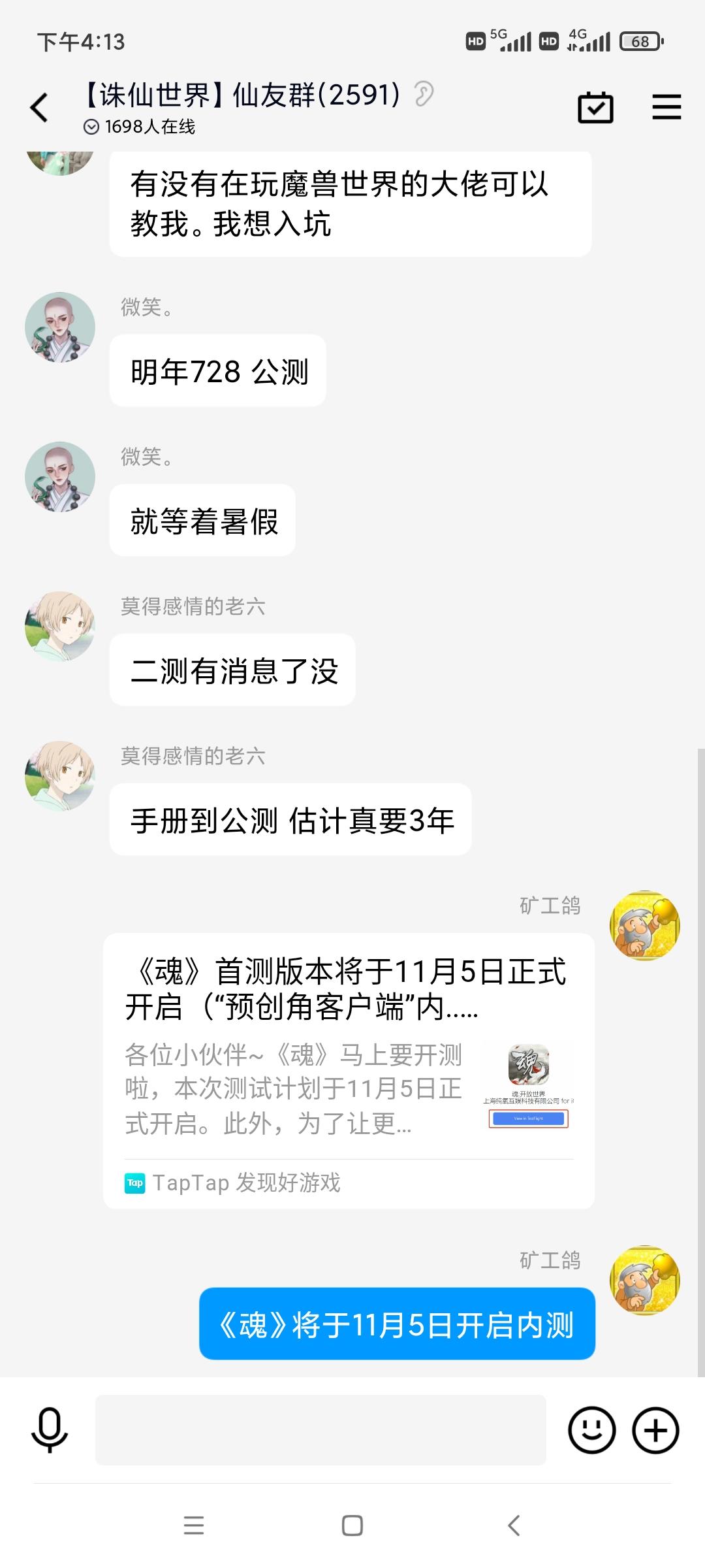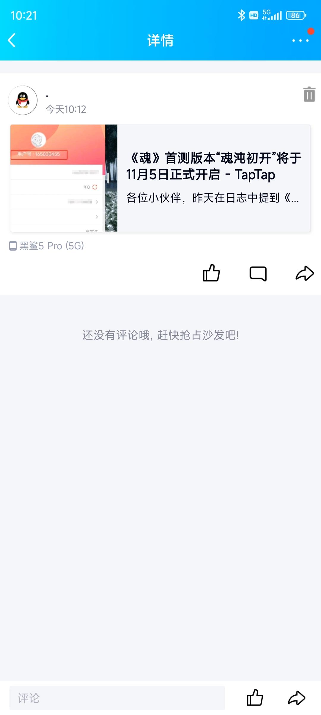 我来参与《魂》11月5日的首测啦 用户号:165144863