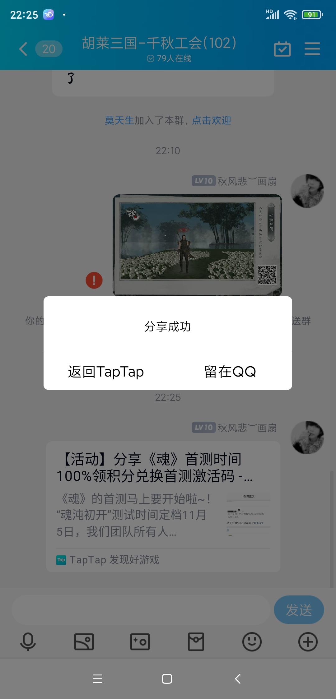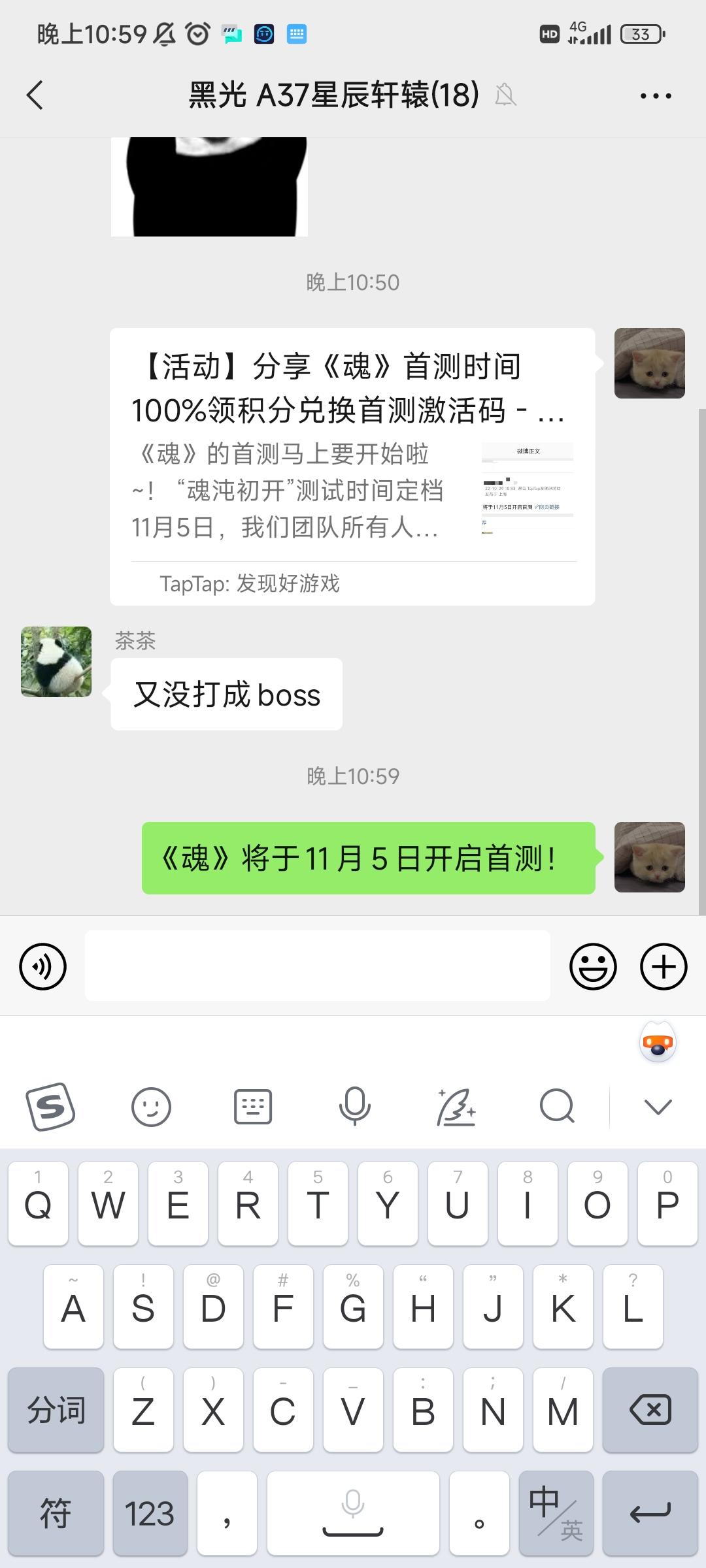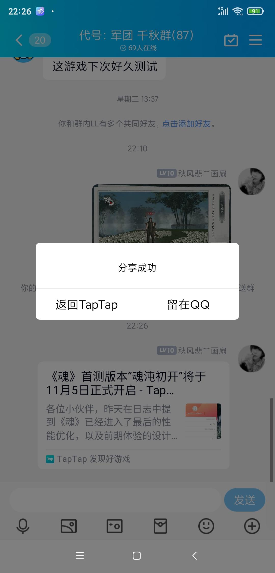 我来参与《魂》11月5日首测啦 用户号:165132259 已分享者4个群 qq空间 微博 微信朋友圈