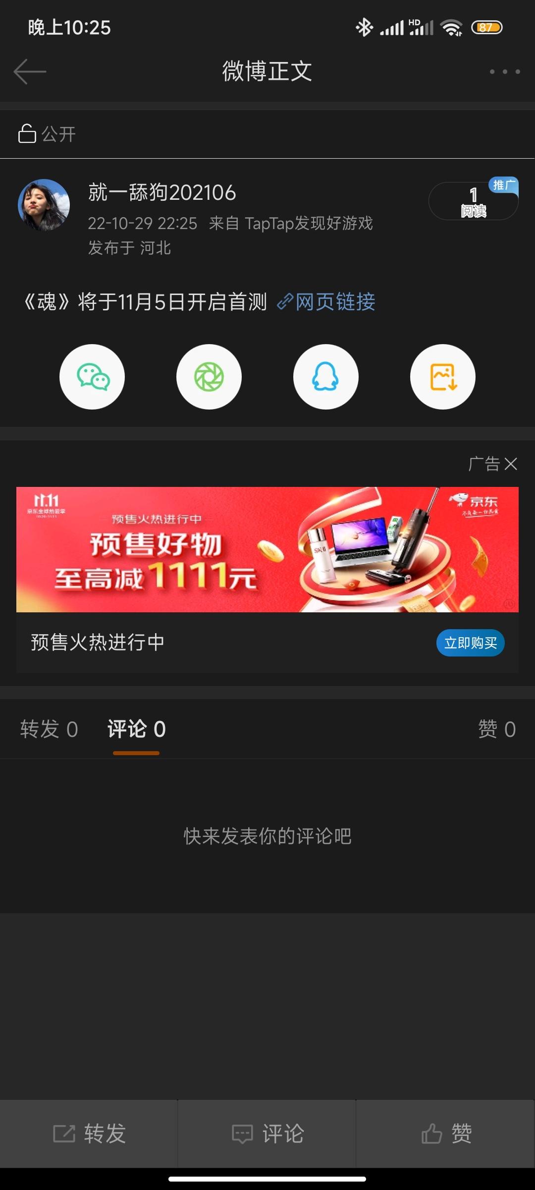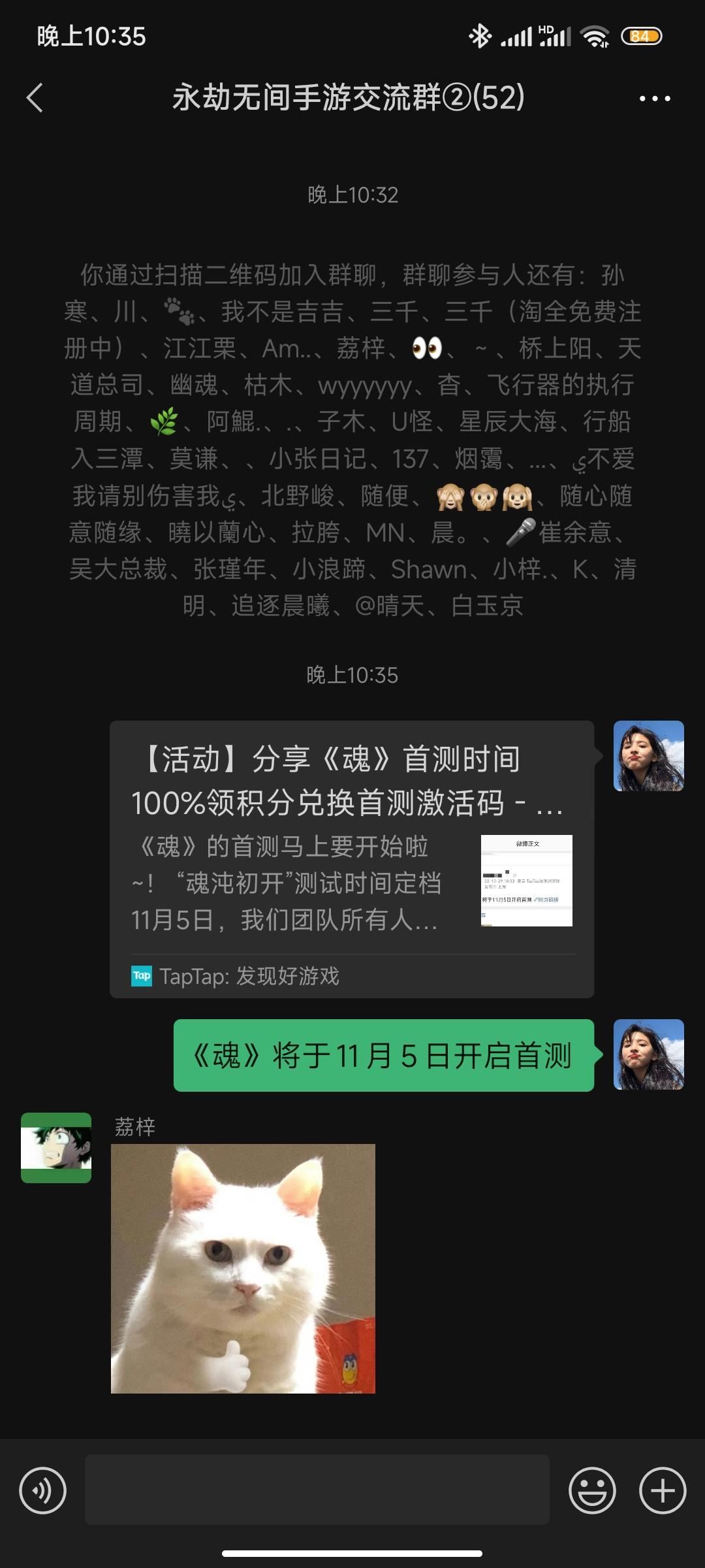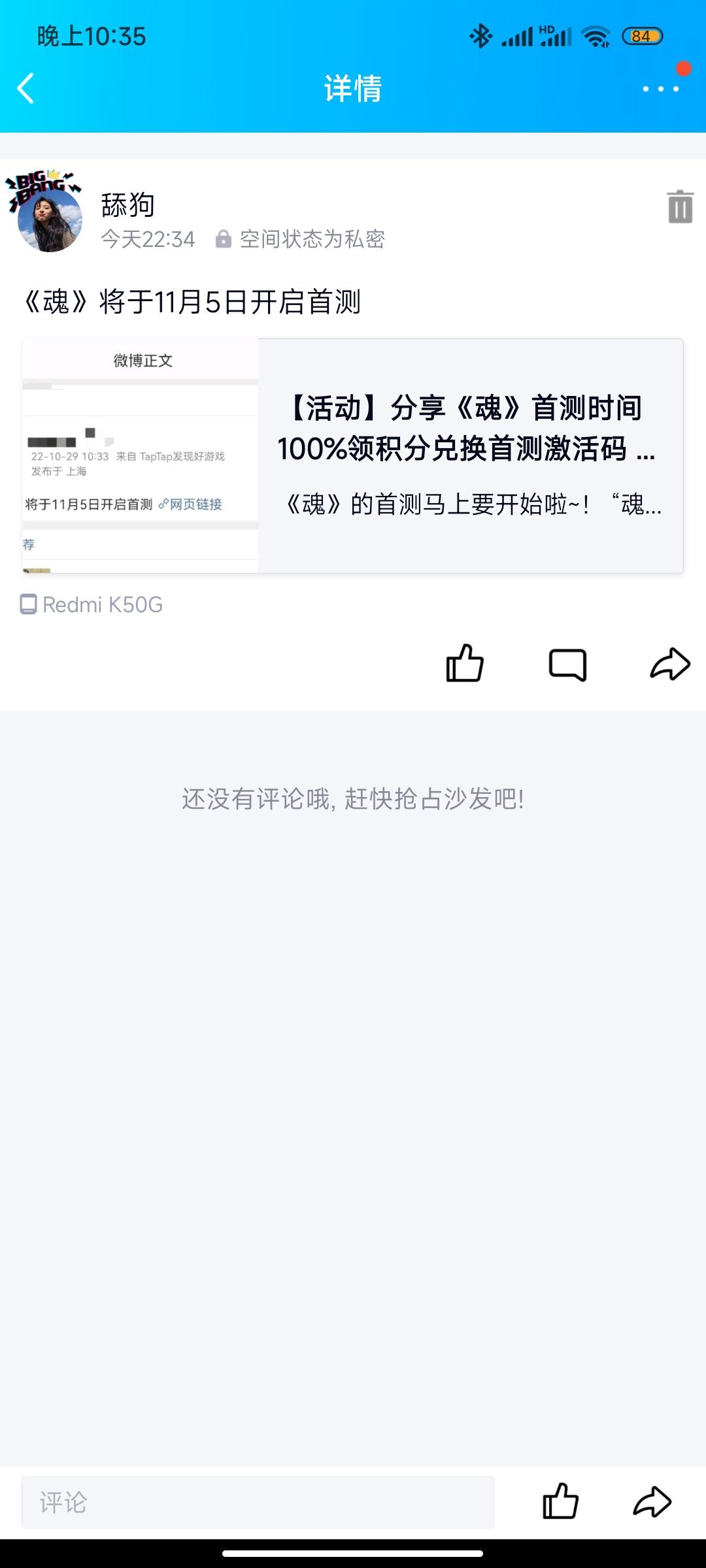 我来参与《魂》11月5日首测啦 用户号:165132259 已分享者4个群 qq空间 微博 微信朋友圈