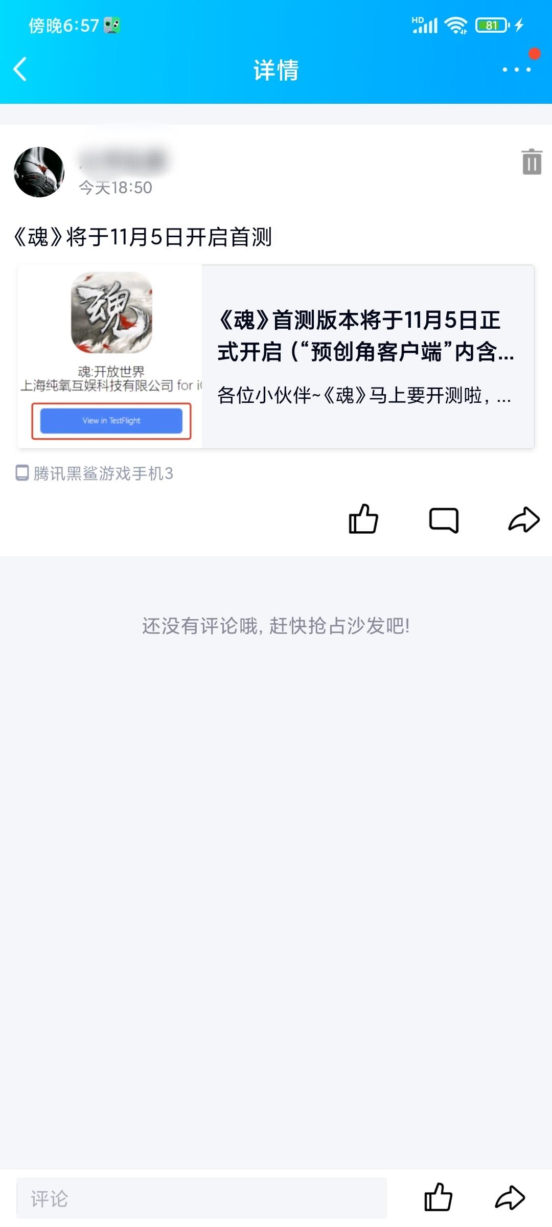 【我来参与《魂》11月5日的首测啦】 ID:165125169