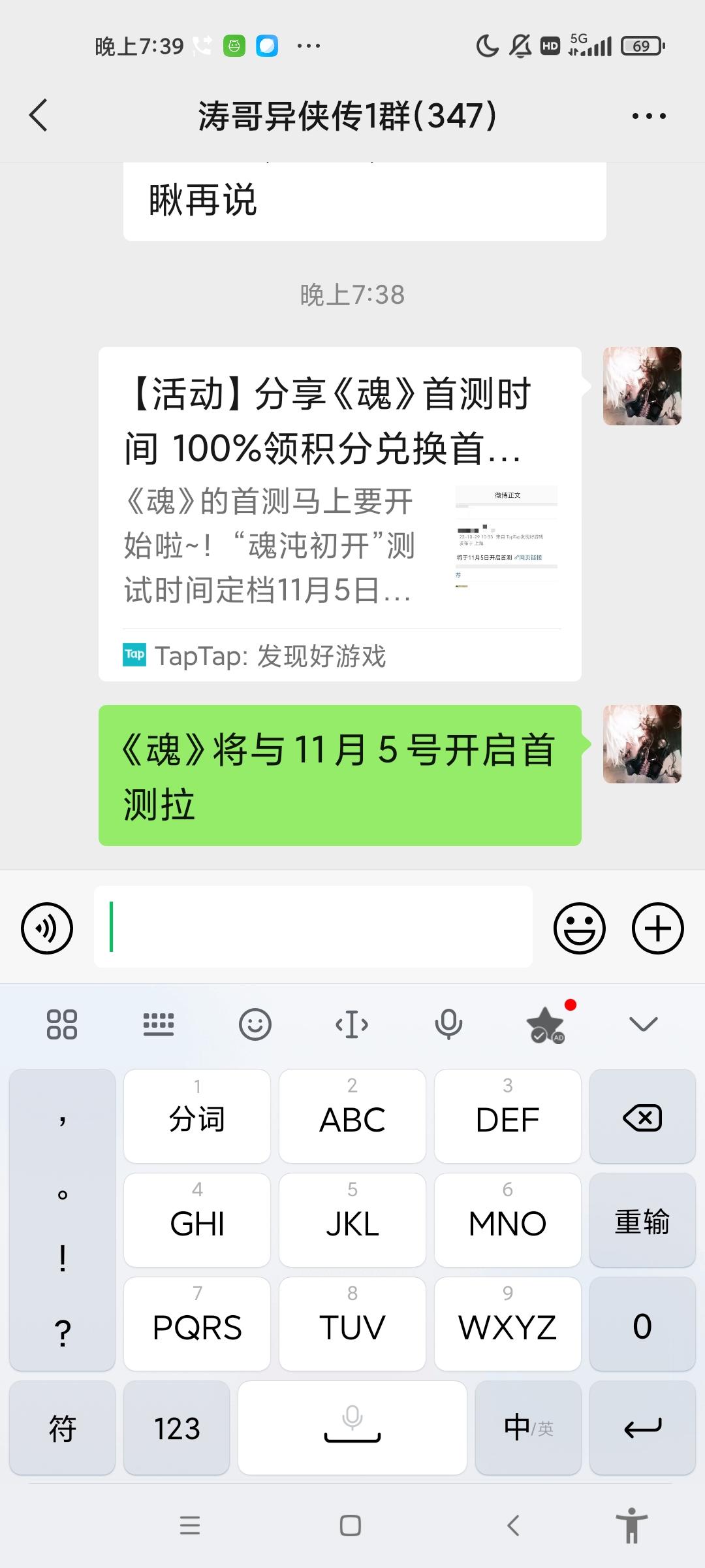 我来参与《魂》11月5号的首测啦,用户号:165119156