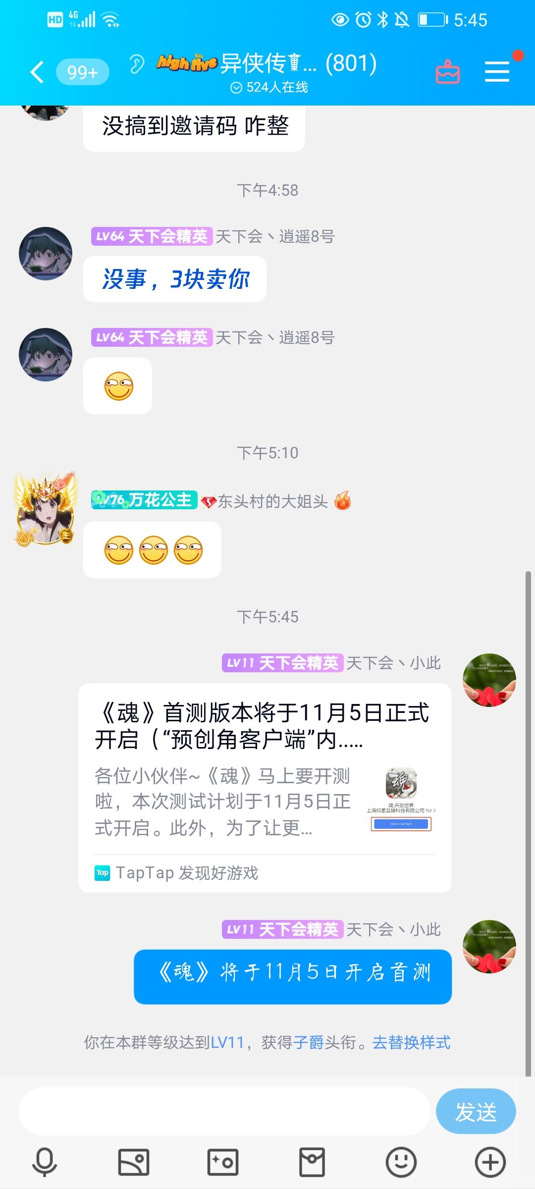 我来参与《魂》11月5日的首测啦用户号:164643264