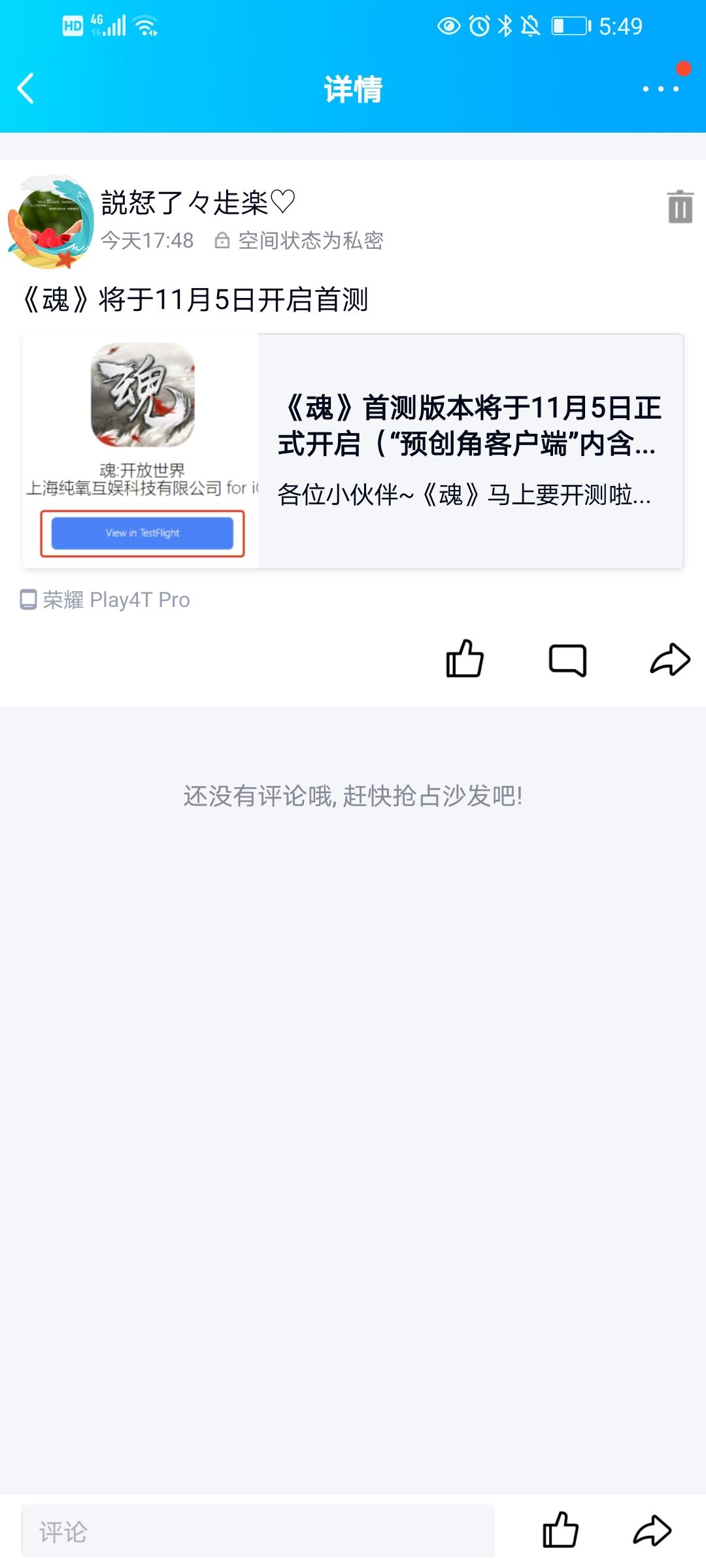 我来参与《魂》11月5日的首测啦用户号:165119361
