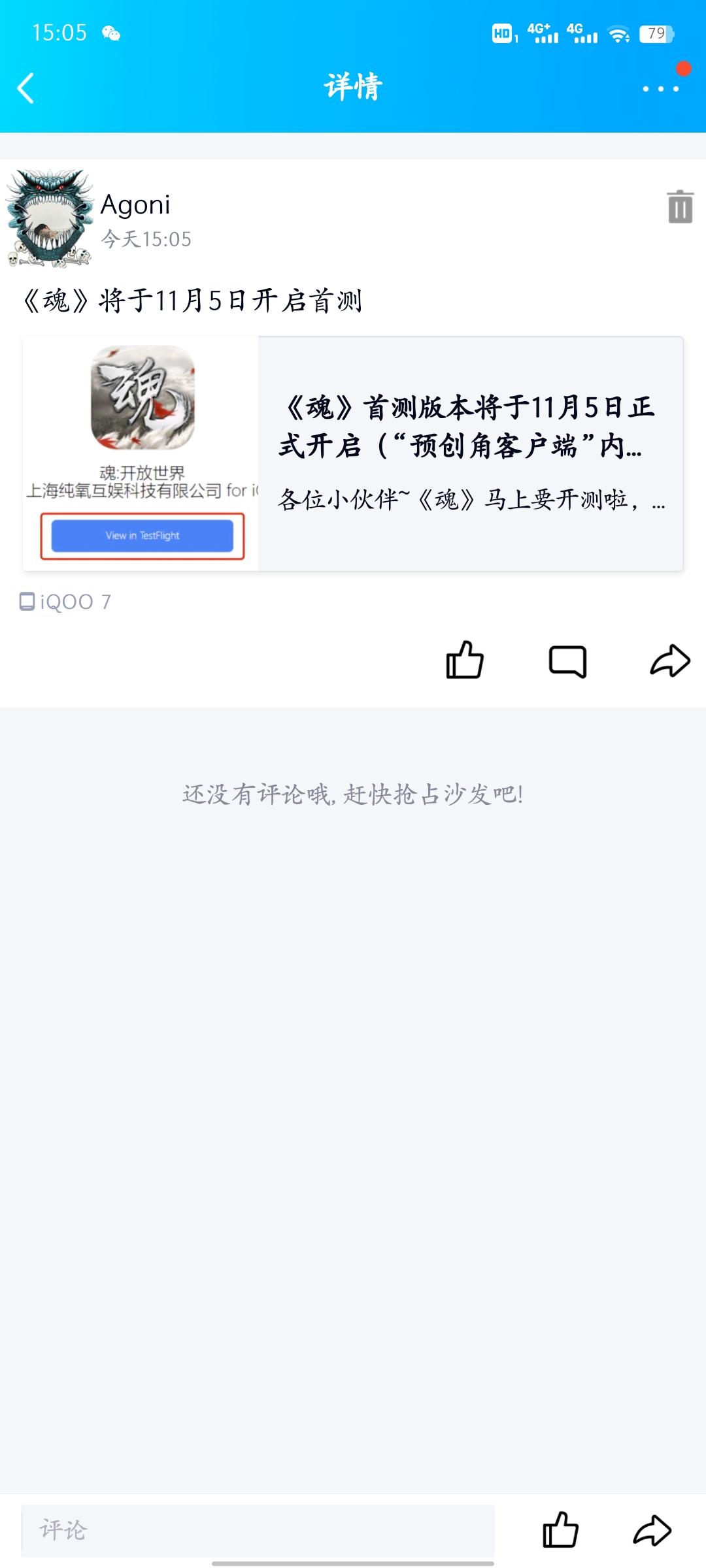 我来参与《魂》11月5日的首测啦!!用户号:165122904