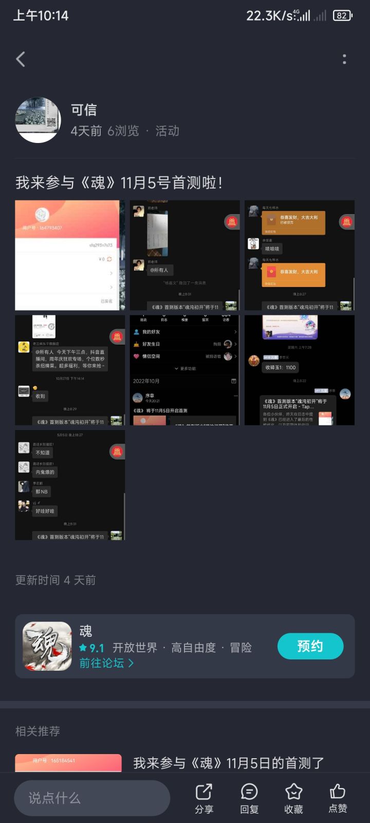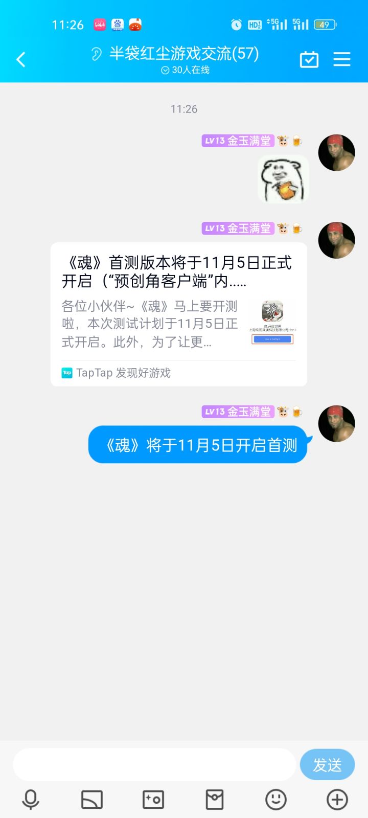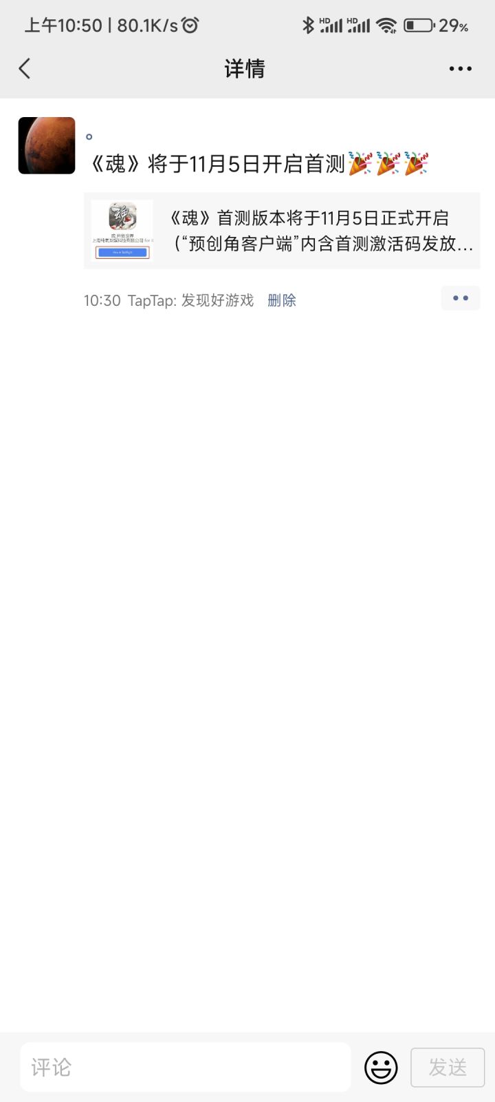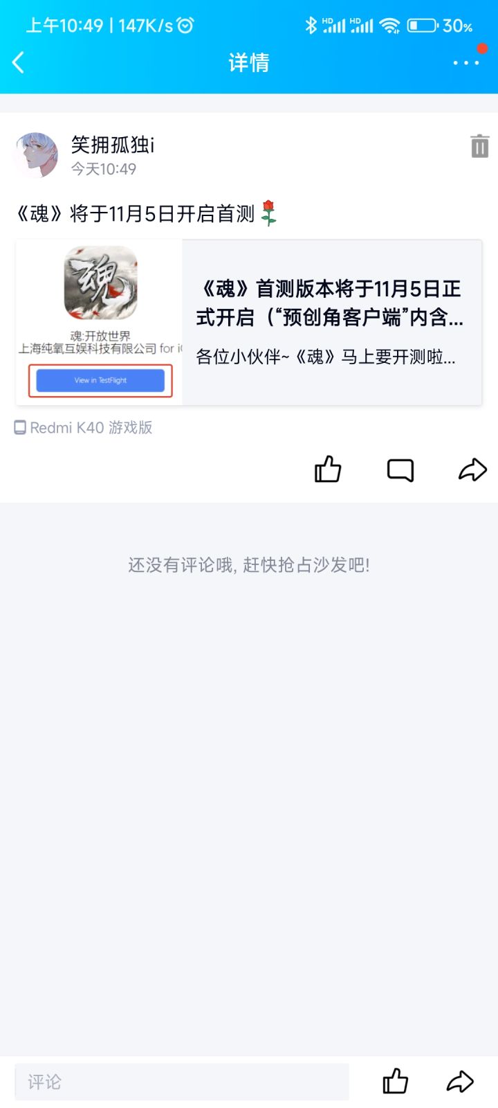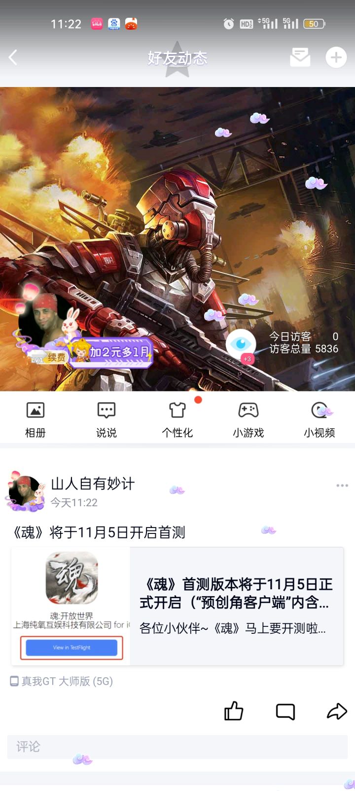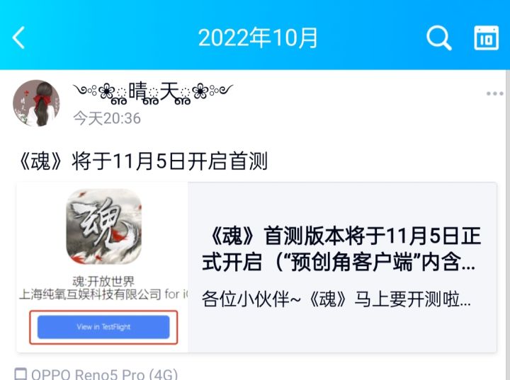 我来参加《魂》11月5号首测,我又重新转发发了新的帖子