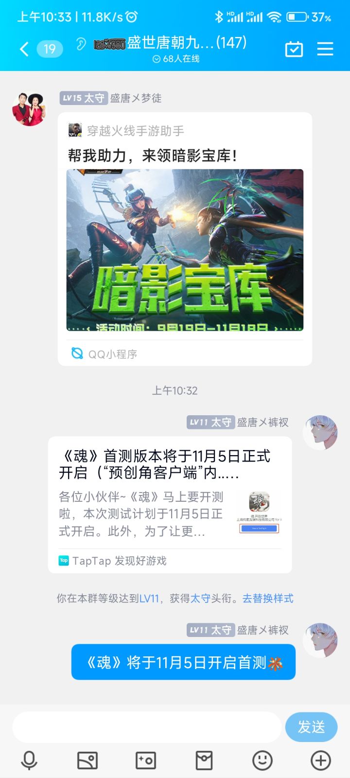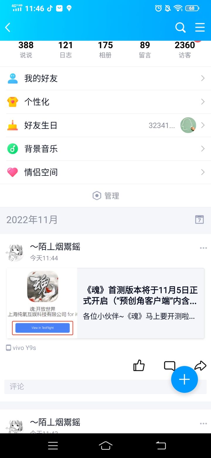 我来参加《魂》11月5日的首测了,之前11月1号发的刚看发现有的图片被屏蔽我现在再发几次