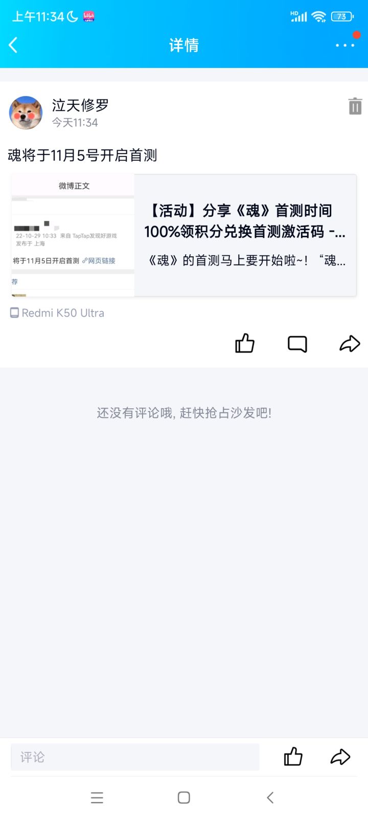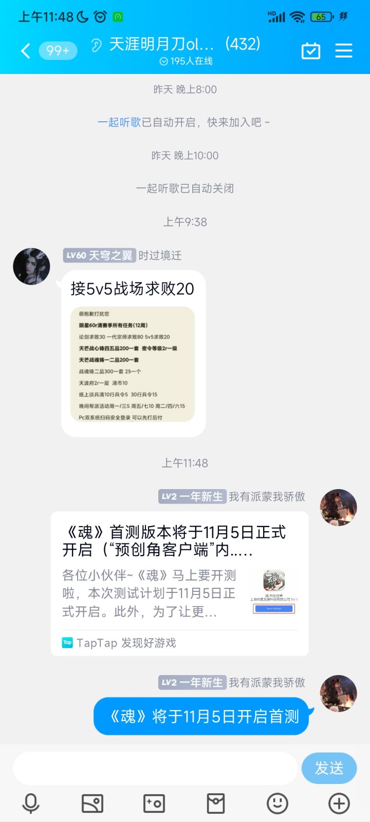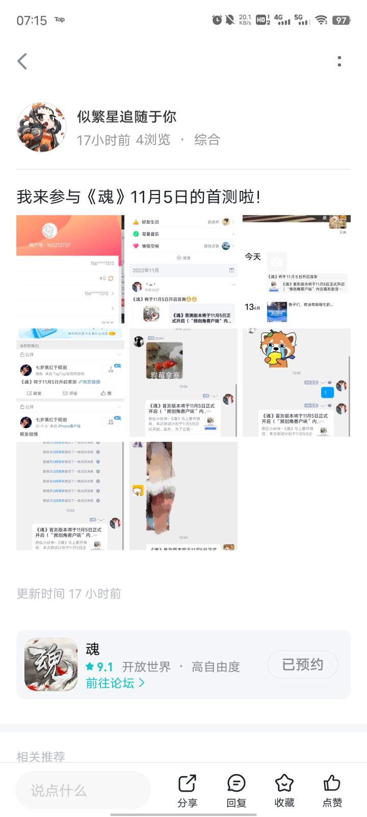 我来参与《魂》11月5日的首测啦!用户号:165161828