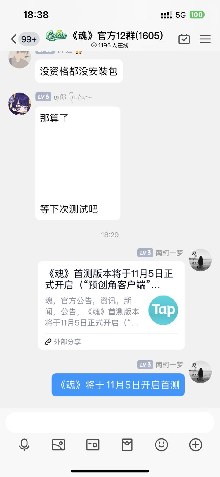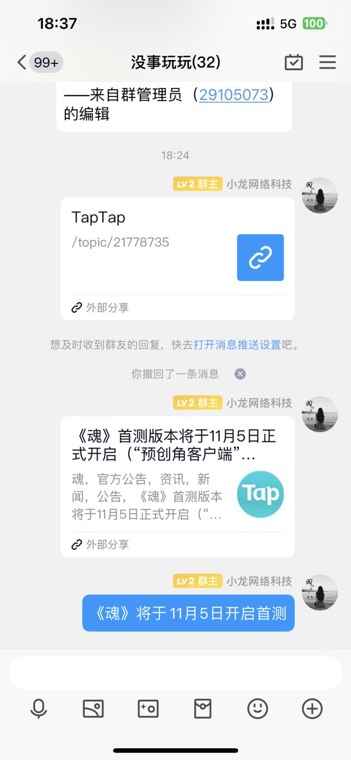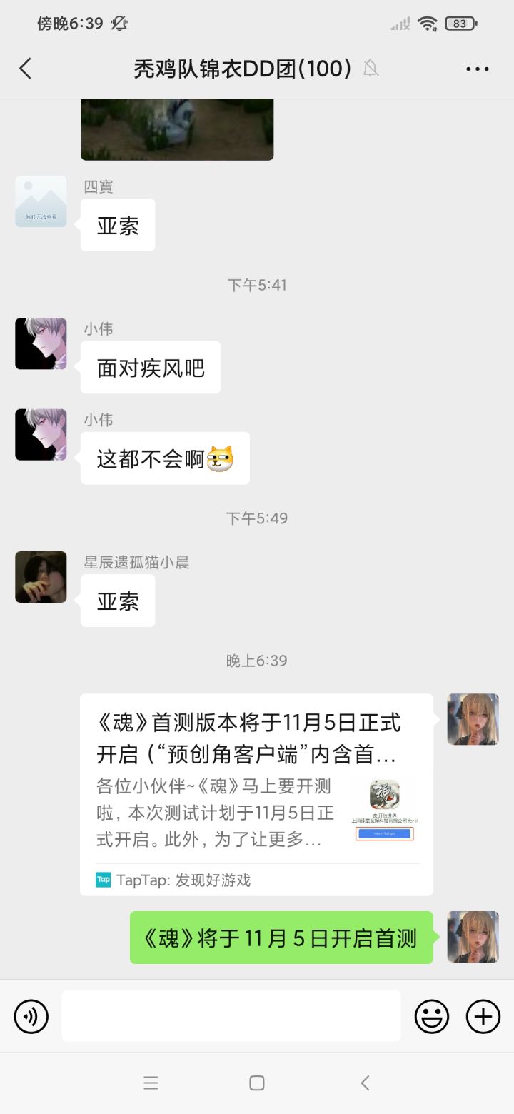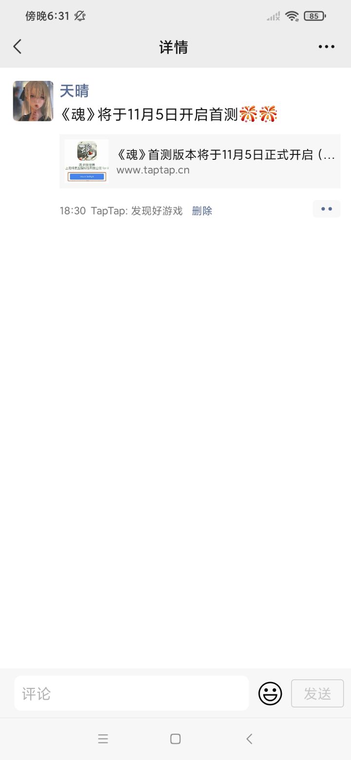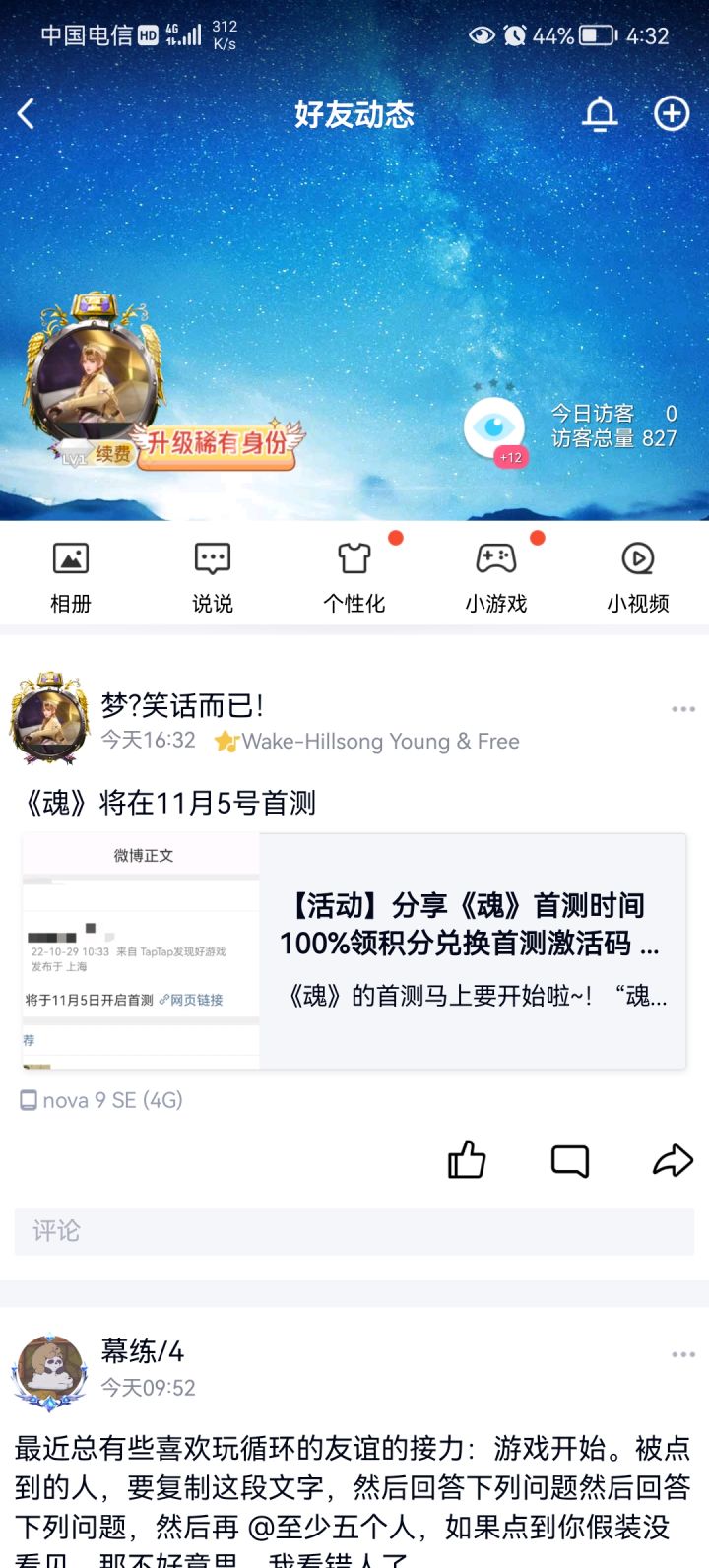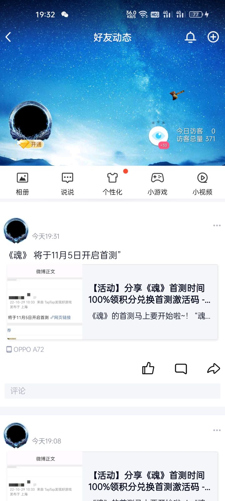 【我来参与《魂》11月5日首测啦】 账号:1652185224个Qq群,1个微信群朋友圈、Qq空间、新浪微博