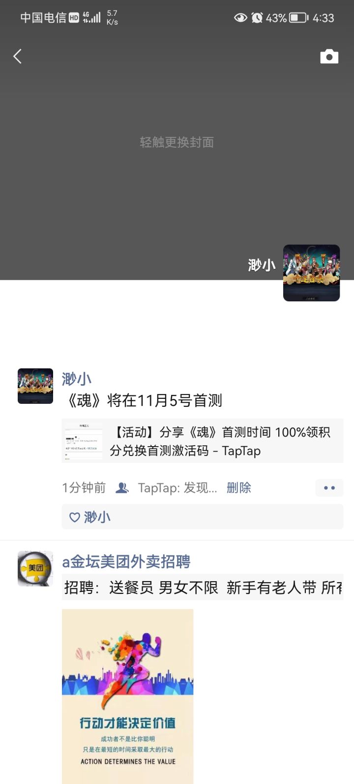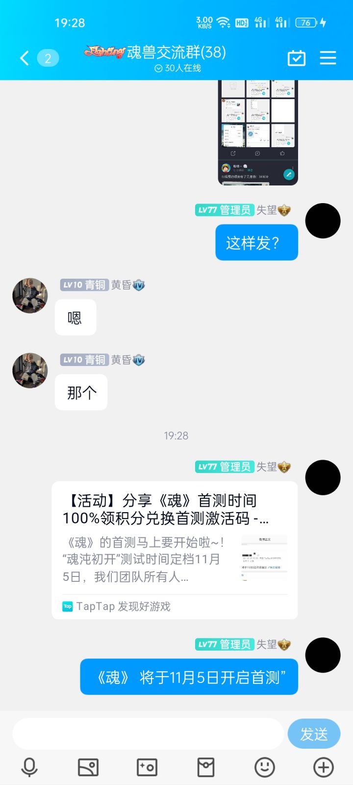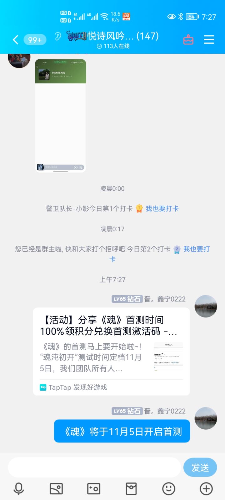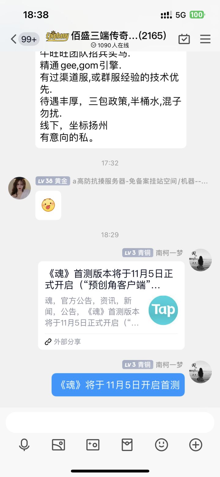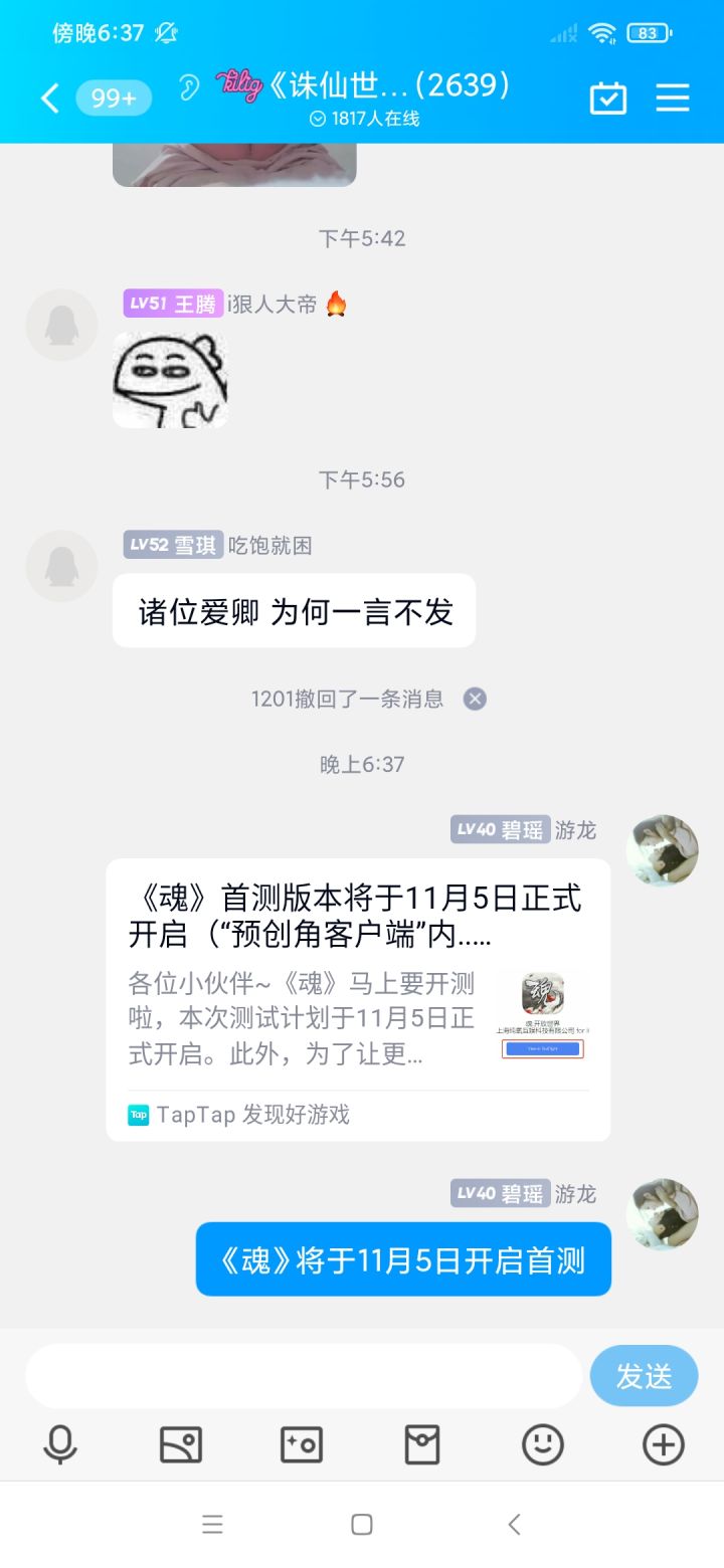【我来参与《魂》11月5日首测啦】 账号:1652185224个Qq群,1个微信群朋友圈、Qq空间、新浪微博