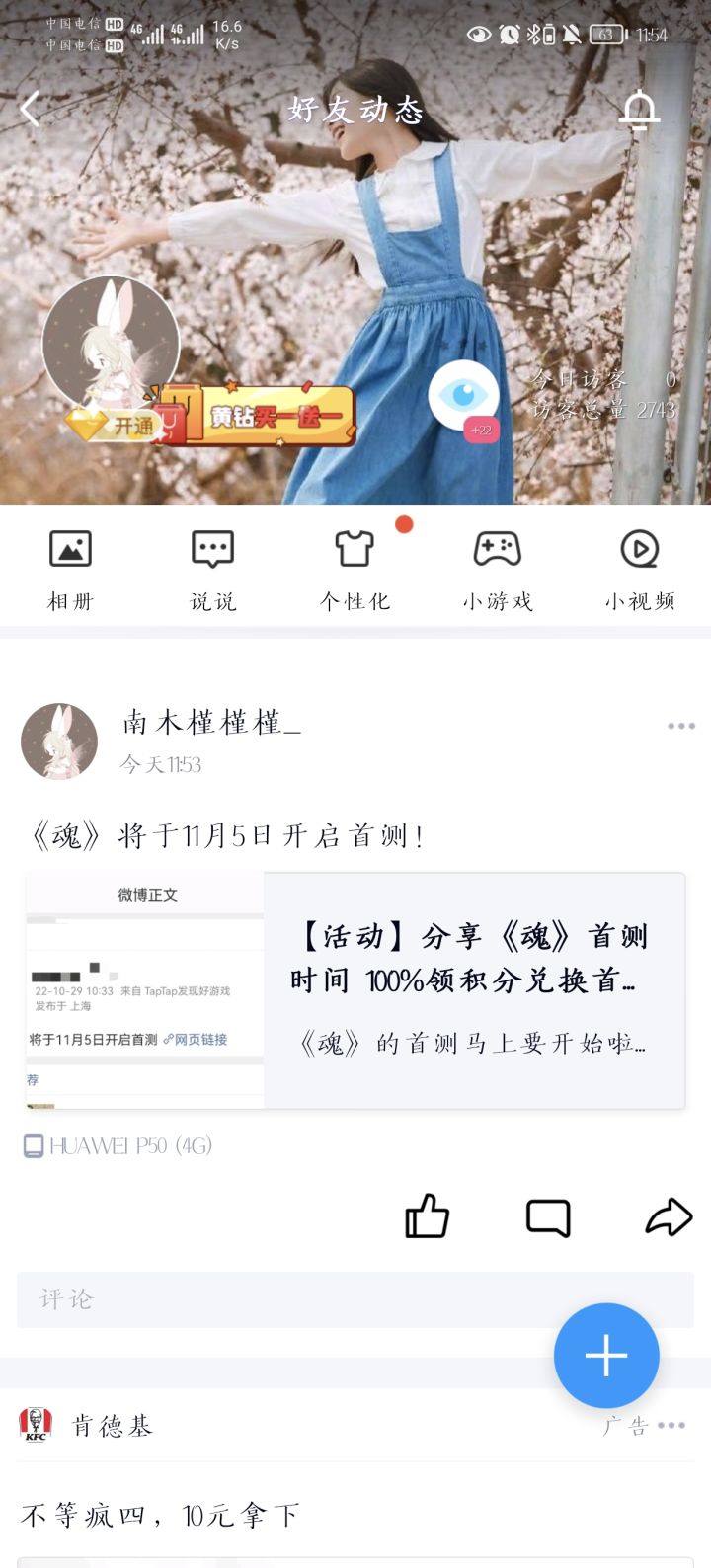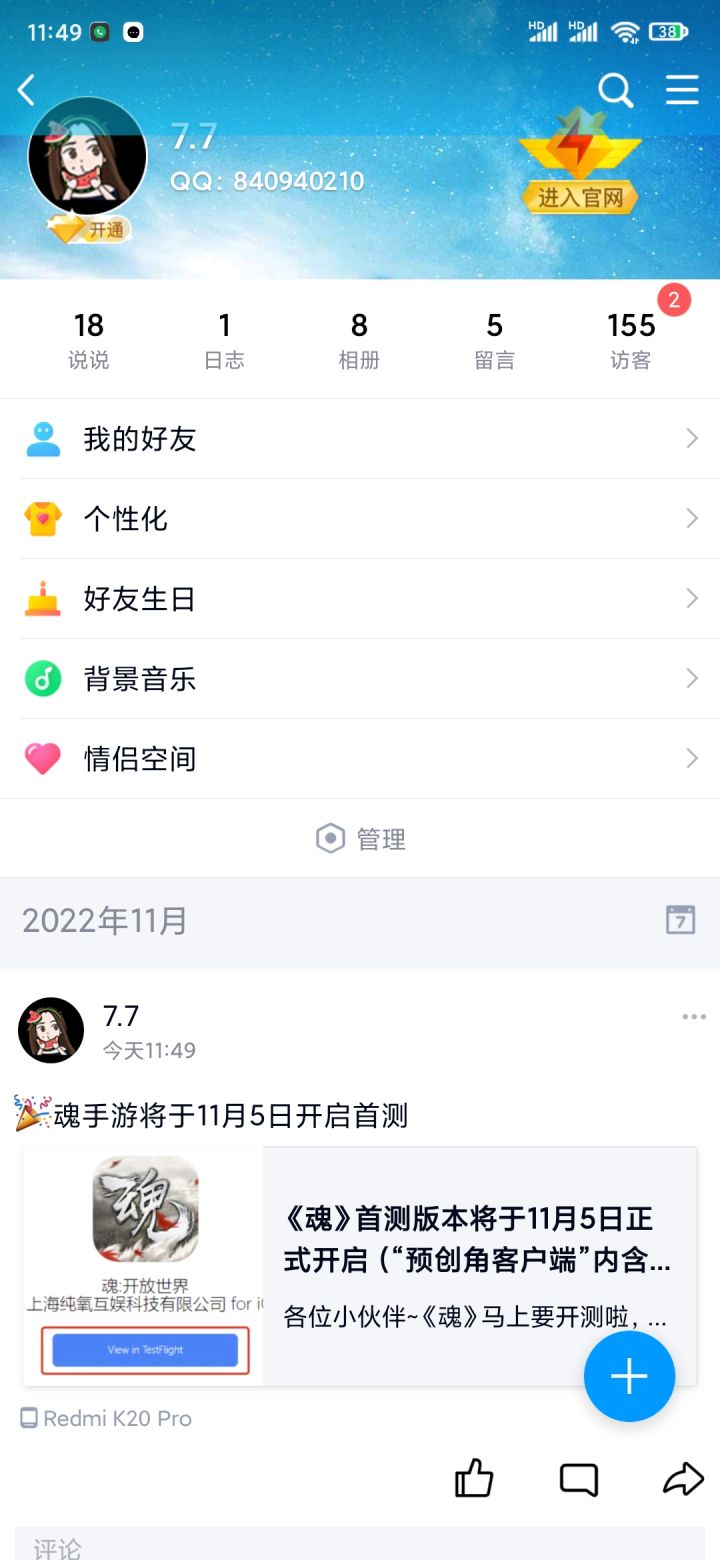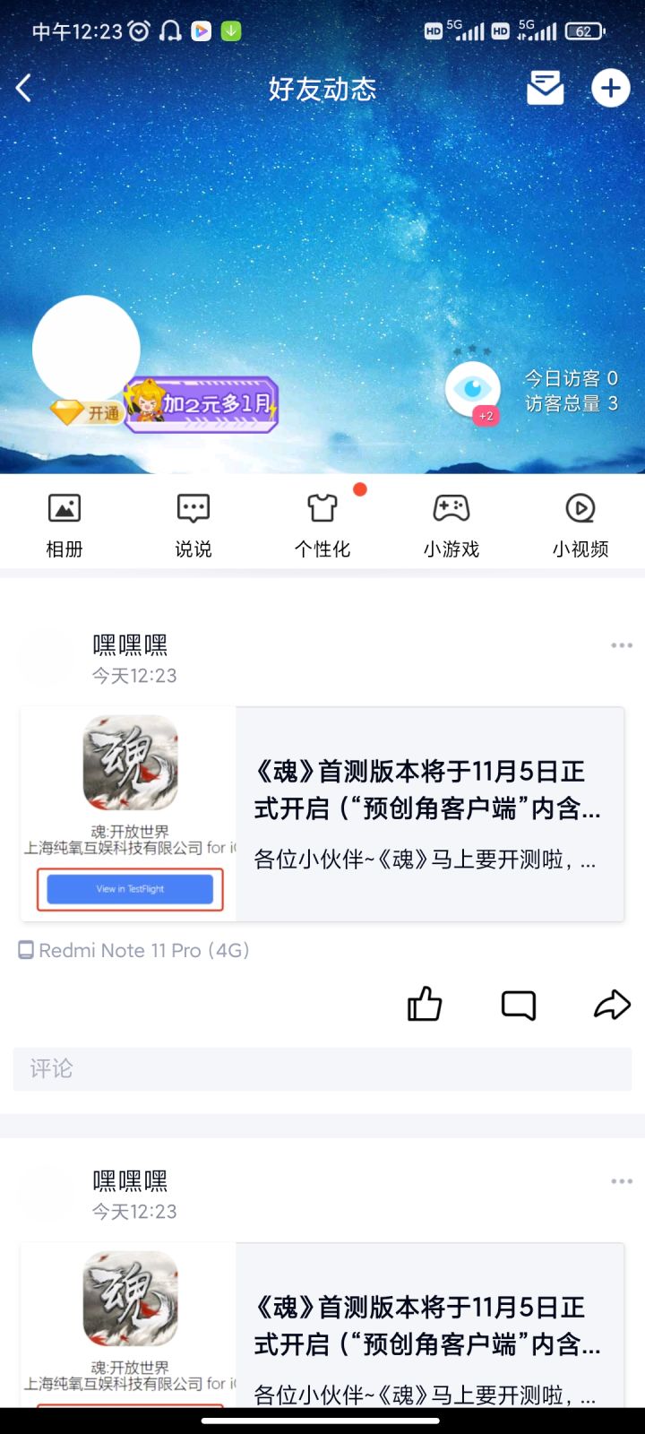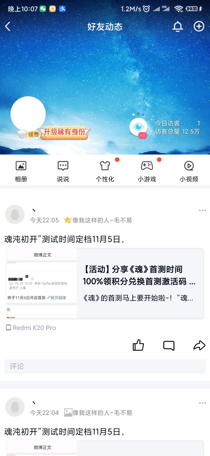 我来参与《魂》11月5日的首测啦球球给个资格吧看到的晚了呜呜呜微博➕10qq空间➕10五个群➕100
