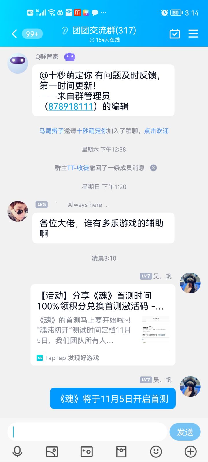 我来参加《魂》11月5日的首测啦165207206