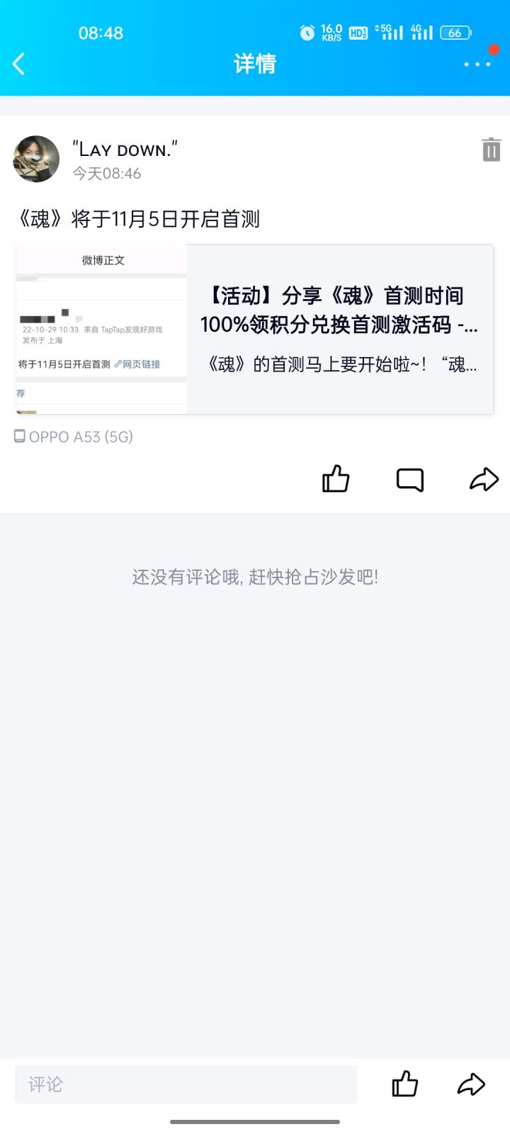 我来参加《魂》11月5日的首测啦