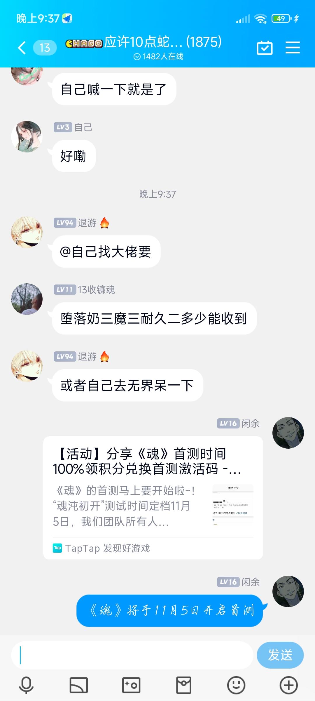 我来参与《魂》11月5日的首测啦!用户号是165180580🙏🙏🙏