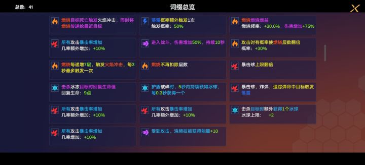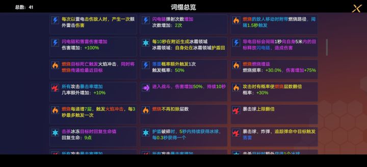 装备的话,风鞋是必须滴,由于我玩的是拿刀的,头盔拿的冰,冰的头盔话有概率触发寒冰爆破,手套冰手套火手套都可,风手套受益不大那个风刃也就加攻速有用,腰带火腰带收益最大,可以叠加燃烧。 注意:有提升暴击率的就拿暴击率毕竟没带暴击装。 这套路容错也贼高打小怪打BOSS都好打。 词缀的话,这是重点。。。 火系词缀:必带,火系技能攻击冰冻目标或冰系技能攻击燃烧目标触发火焰冲击这个一个词缀。。。其他黄色词缀,攻击有概率使燃烧层数翻倍加上燃烧不扣层数,这个打boss挺好的。火焰其他随便点,燃烧增益只能点一下经验之谈。其他尽量点增加燃烧层数燃烧层数高了打的伤害越高。 冰系词缀:必带,对冰冻的目标提升暴击率,暴击伤害这一个词缀,这里暴击伤害是400%,就冲这个就说明它的伤害不可能底,其他随便点,注意护盾破碎,受击使目标冰冻点一两下就够了,其他点加冰球上限。其他黄色词缀感觉作用不大。 风系词缀:必带,龙卷风,风刃添加寒冷, 龙卷风,风刃添加燃烧, 这两个词缀,主加,龙卷风范围,龙卷风伤害,风刃的话点一个杀死目标加风刃,风刃上限+5,再点一个每有一个风刃加攻速。 关于除了必带的黄色词缀,其他黄色词缀:火>风>冰 紫色词缀或是蓝色词缀:风>火>冰 总体思路风鞋触发的龙卷风,造成寒冰与燃烧伤害同时燃烧与寒冰会触发火焰冲击,造成高额伤害在提升自己的暴击率与暴击伤害,自身火焰圈加风刃加冰球,加上平a造成多段乱七八糟的伤害。 猜测:暴击球用来提升暴击率和暴击伤害,所以单纯的暴击套打boss伤害也挺可观的,风刃用来加攻速,触碰敌方会造成伤害但很低,冰球提升冰冻概率。