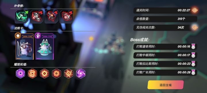 本来20分钟能结束 没注意关卡每400金币减少百分之十生命死了两次稍微刷了图凑了下骨骼…正常速刷一个风鞋一个暴击手或者暴击头就能速通