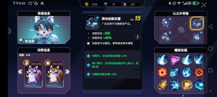 首次通关 冰刀+双浣熊(盾+吸)特效,祝福主要是血量相关的(包括吸血,有一个暴击加血的祝福很好用)和伤害百分百加成😎