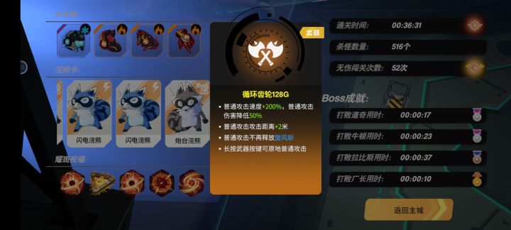 目前感觉最稳的流派,大狗普攻流,第一关出了武器就通关,属性主要普攻暴击,后攻速,20几率放飞斧也可以拿,要是普攻实在堆不上去也可以走火焰的特效流这个派系请小怪打boss都不错