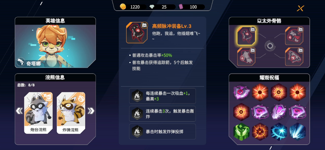 废话:我疯狗没玩几次就通了,因为喜欢远程,疯狗是远程打emo了,结果运气特别好。小猎豹是我正经搞了的,总之没有疯狗那么夸张,比较容易就能搞到。疯狗这个我纯靠运气瞎打的,就发一下主要buff。疯狗用的是十分常见的暴击流,但是这个打boss速度确实很快。首先把俩暴击拿了,拿到那个站桩连击,攻速+200那个。我还拿了攻速+45%重点:疯狗吃回血,连击加血拿了,橙色加血的那个生命回复会不会叠加不