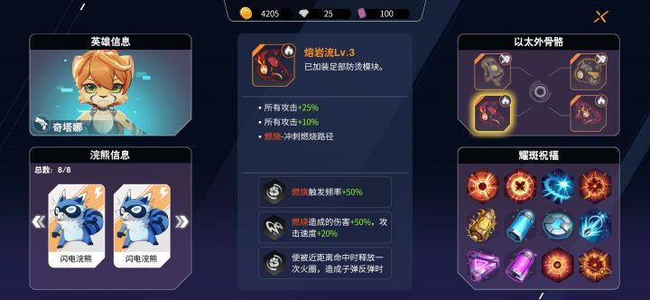 火手套头盔连续暴击加攻速,连续暴击回血,暴击触发轰炸,三次暴击炸,暴击叠加易爆,十爆率或者暴击回能量 土鞋免伤40,反弹易伤,近距离反弹易爆 火腰带暴击点火,对燃烧目标伤害加30 ,攻速燃烧伤害 如果遇见普攻伤害磁条的火头,可以用火头盔土腰带。 核心天赋,原地连击的那个专属武器。原地持续加伤,造成伤害持续加伤,攻击掉血增加伤害,连击回血,生命回复加30,各种能加普攻伤害攻速的,连击触发斧子。没高兴带护盾,因为有bug 成型以后,其实就不太带脑子了,不管什么怪,都能站撸打过。