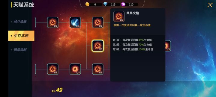 死里逃生和凤凰火焰效果冲突,点完凤凰火焰就只能复活一次了,请尽快修复