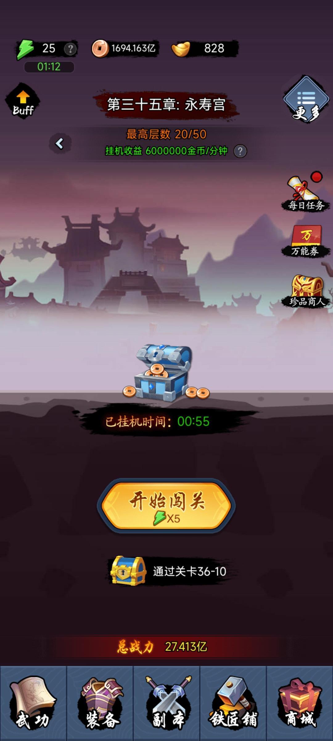 1.建议增加“整理”功能,能够把包里的装备按照挂机、闯关、品质、属性四个类型自动排序(眼睛都找花了)2.增加功法、角色一键全部升级功能(一个个点好累人),又不可能留着不升级
