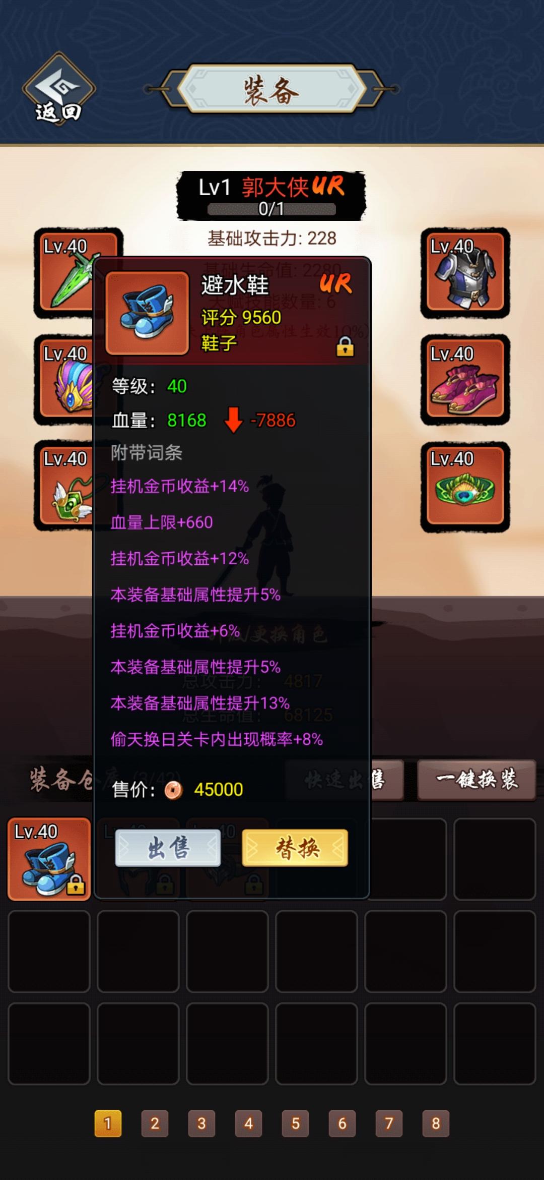 这紫剑概率是紫色20%里面算,还是全部招式的20%,反正开始玩就直接三级了,到现在玩下来这剑法出的并不比其他紫色多。图2画圈圈的部分应该就是出武功几率吧,前期只有蓝绿白。