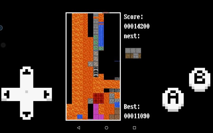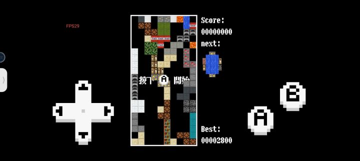 还没开始就有分;上边莫名其妙不动的岩浆和一层水;还没开始就有的方块;按↓键出水的一格无限水;错乱的下一个方块;害羞的“開始”