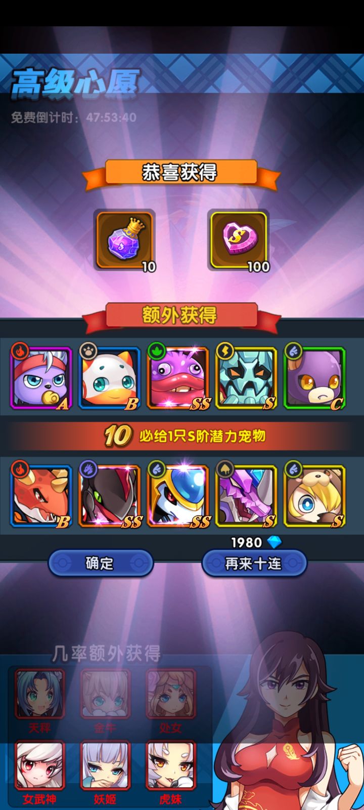 画质和界面都蛮一般的,有点糙,架不住开局送你一万砖石爽爽,爆率还可以吧,浅玩一下当做回忆童年吧,大伙。