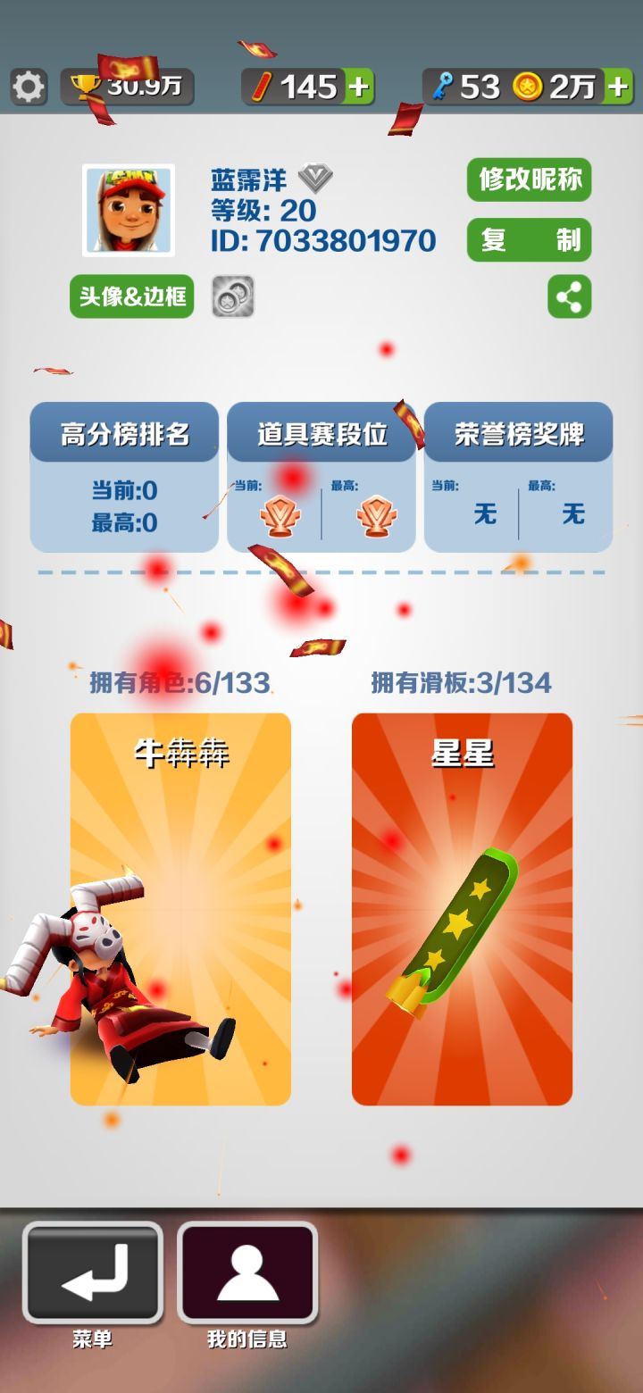 我这不是破解版,前几天刚更新,为什么没有排名啊,连争霸赛里都没分数记录