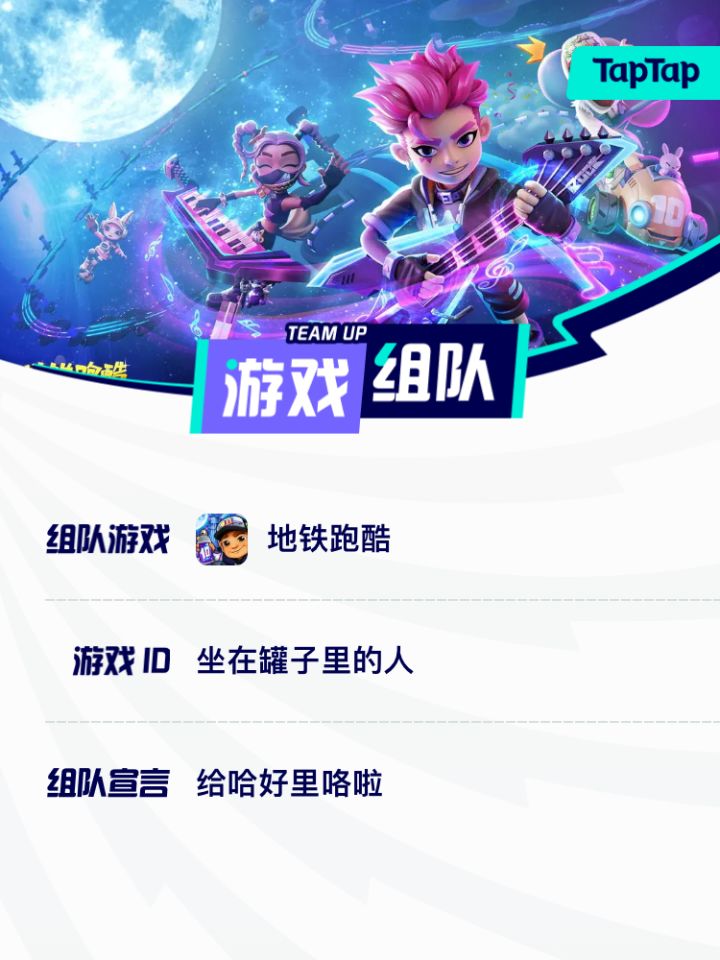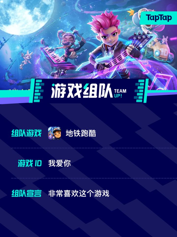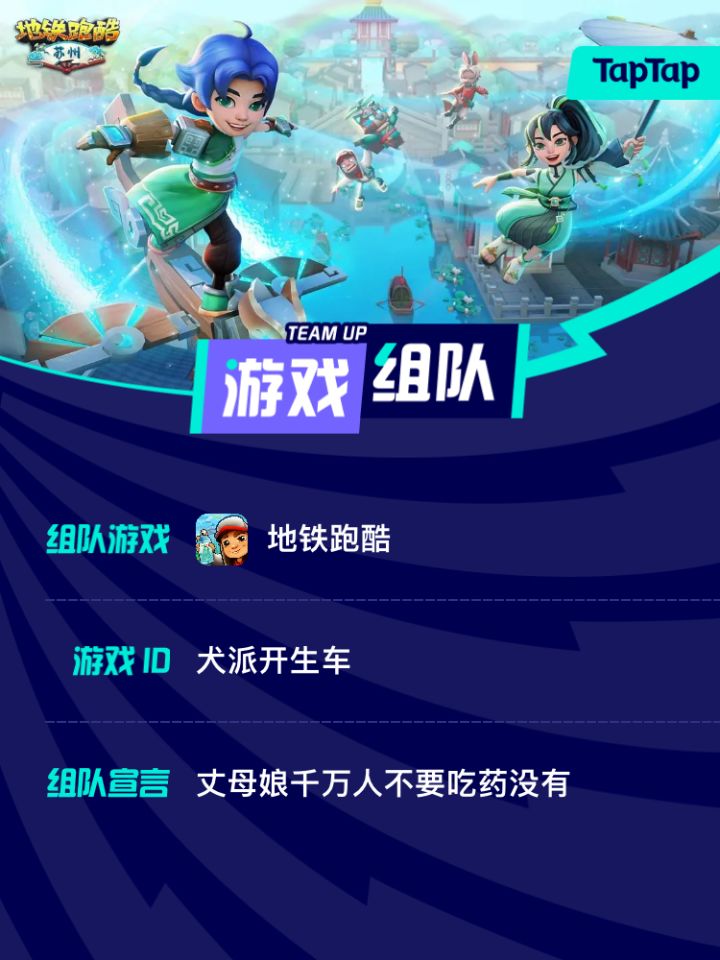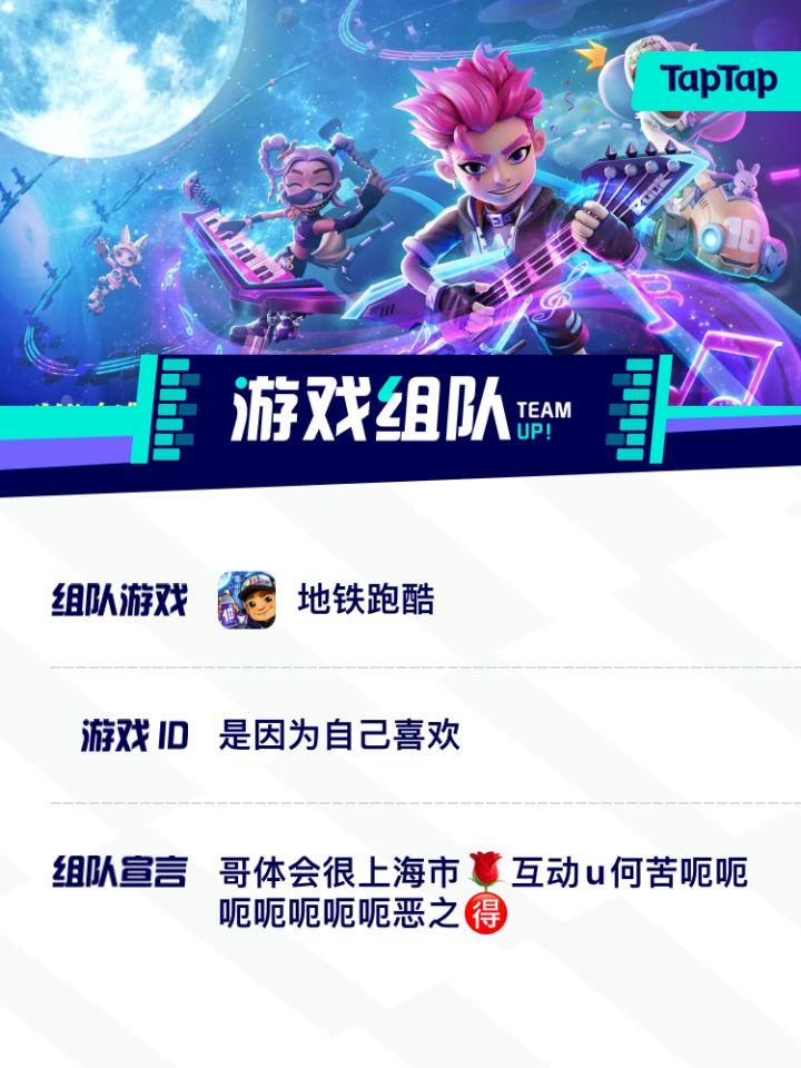 🚩游戏组队 ID:地铁跑酷 宣言:你好,我是你的队友