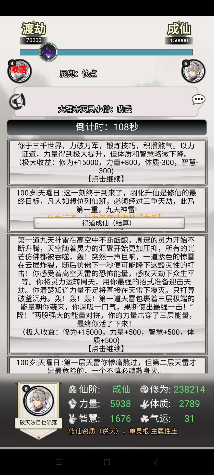 杂灵根测试:河神全拿金银两剑,烛龙来自另一个世界不死成功。河神(右图):力:26,体:16,智:15,气运:15烛龙(左图):43,20,26,17。攻略已随测试更新。