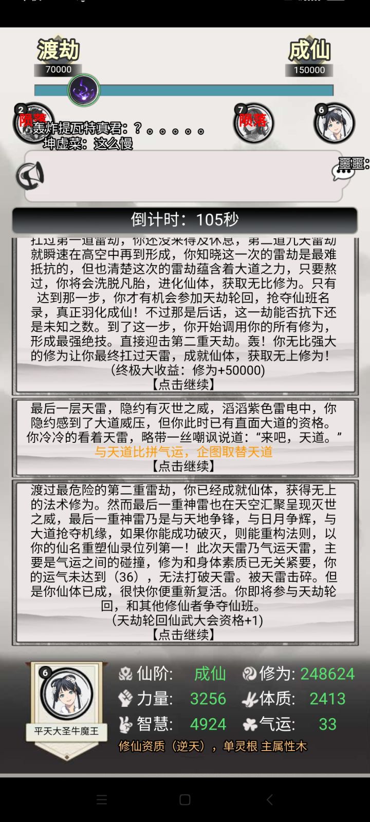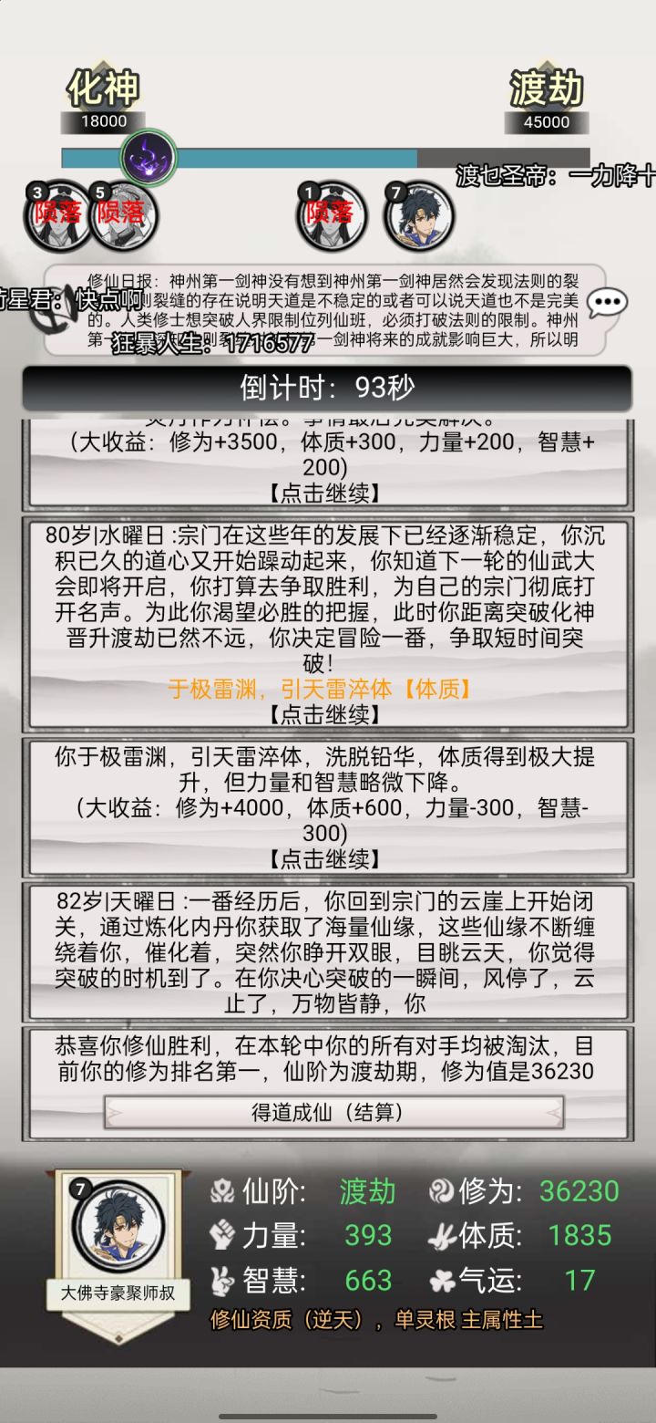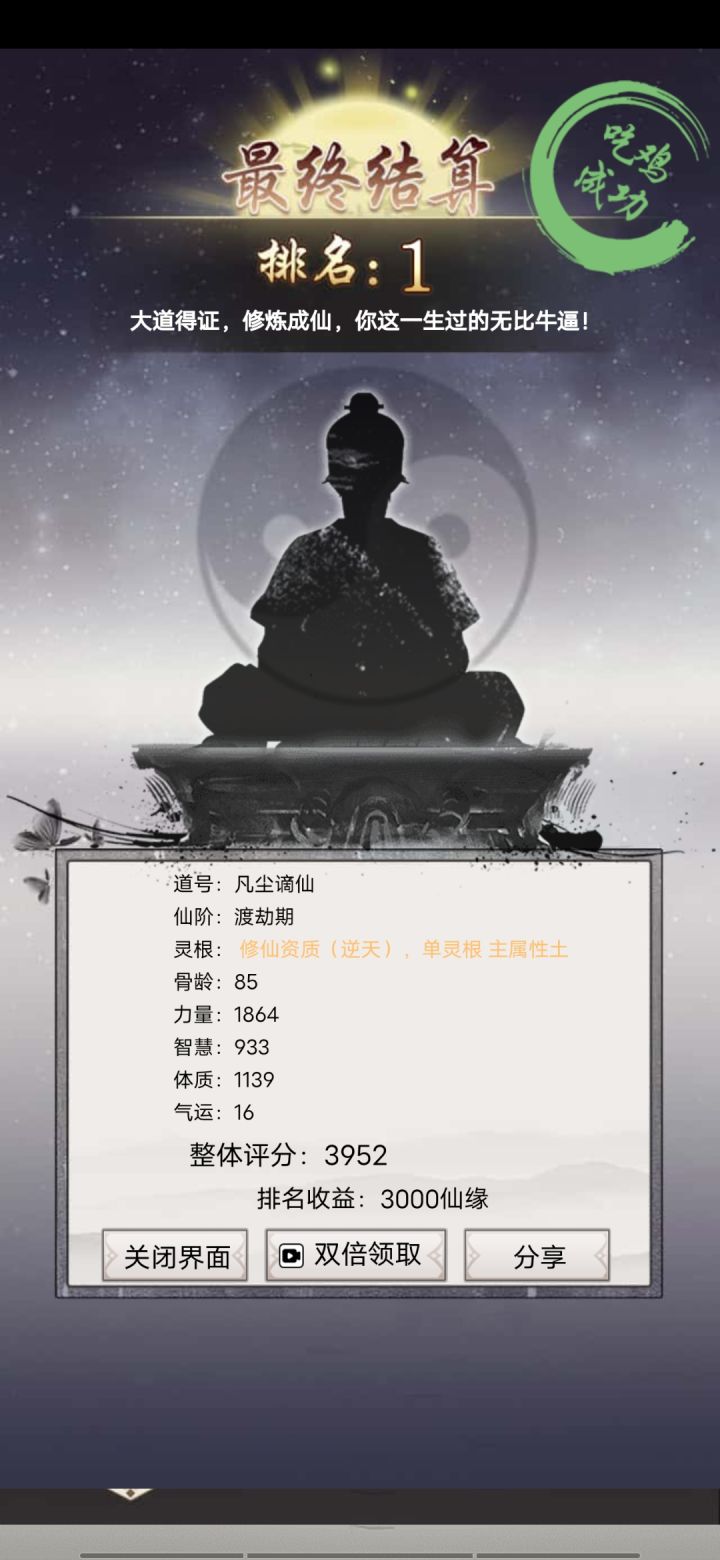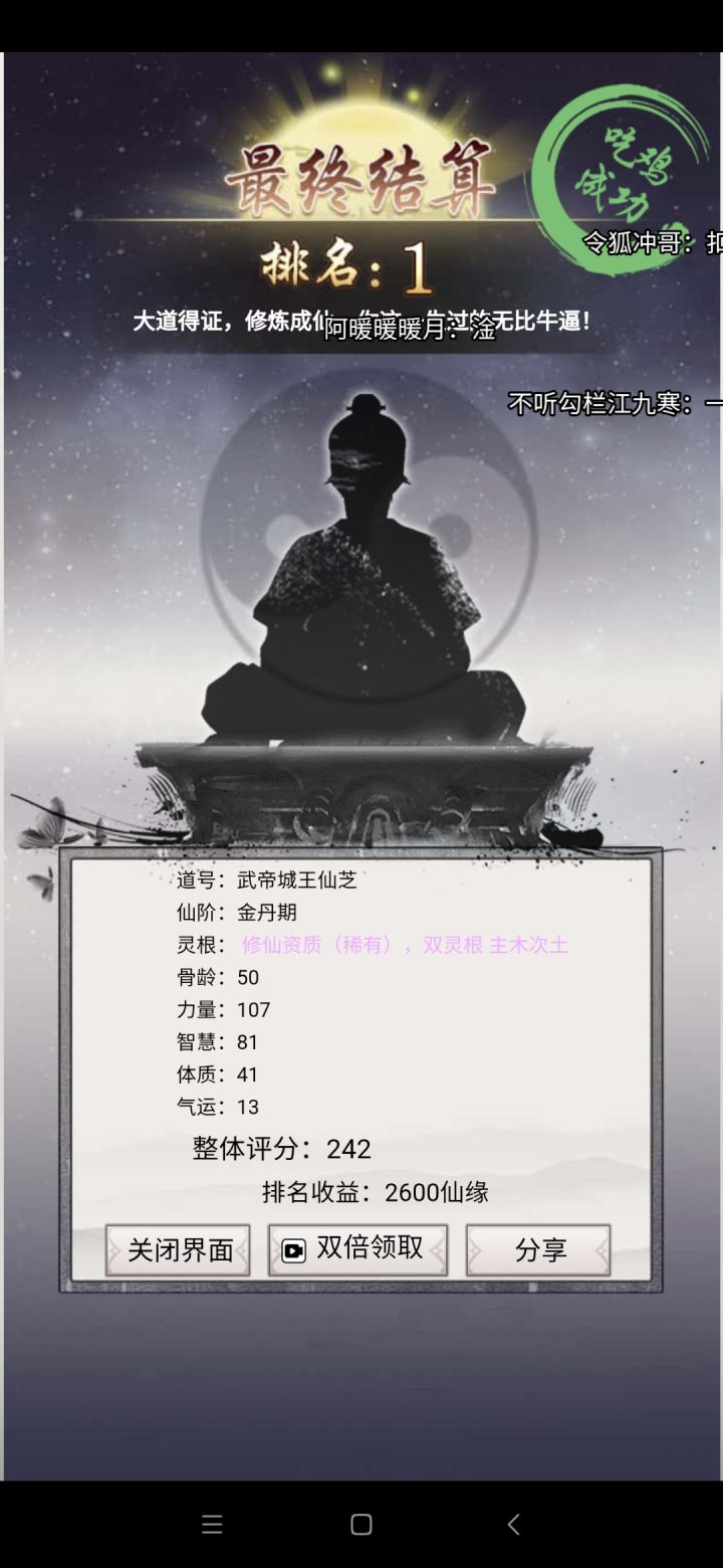 感谢队友的助攻!还以为队友会撑不住了。最后就差气运了,其实我才7阶道体233