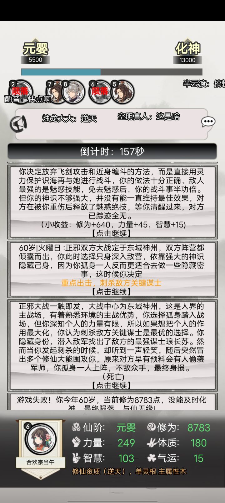 玩这游戏最怕的不是输而且我特么的天胡,想一路横扫挑战那些超难的选项,结果队友全都不到化神就死光了。艸QAQ