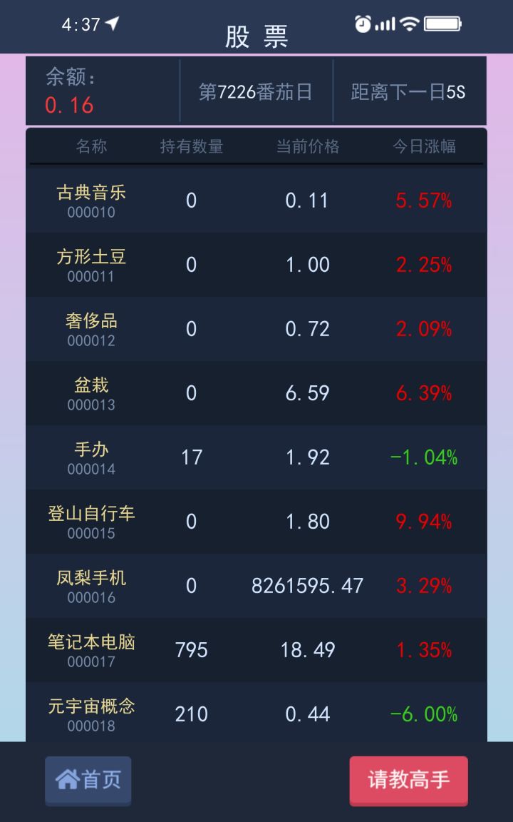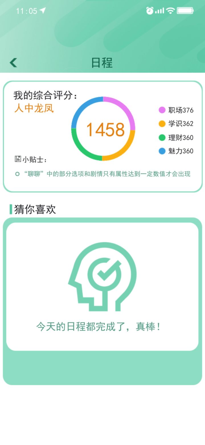 玩了一些时间,写一下自己对于这个游戏的一些理解吧。首先就是收入了,前期基本就是搬砖,搬到差不多1w多就可以去炒股(建议前面一定要选看老王的推荐,虽然广告真的很多。有的时候会亏钱,但大多数都是赚钱的。)其次就是属性点,个人建议优先级 日程+2>属性×3>其他加属性 (当属性×3配合有时可刷出的属性+2能一次加6点属性)。目前玩法方面就只有这些,后续要是出新玩法我也会再谈谈我个人的理解。