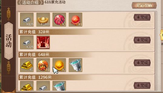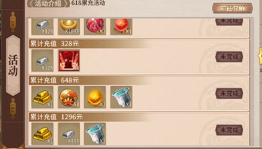 累充30元 元宝618个 银锭60个 初级武器和装备锻造石各一组