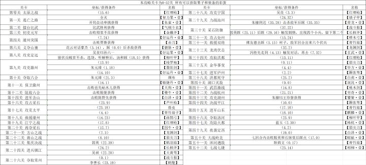 开局自动朱元璋VS元铁骑兵,自动获得【朱雀.壹】我方到达地图橙线位置,敌军伏兵出现在橙圈处。我军过红线处,敌军伏兵出现在红圈处。朱元璋两格范围内友军有攻击力加成,所以输出的时候尽量让汤和贴近朱元璋输出。建议先清光场上的敌军,再去触发下一波伏兵。本关后:汤和【短弓手】加入过关奖励:武力丹·壹、智力丹·壹、统御丹·壹补给品彩蛋:(7.9)麦全灭敌军额外获得智力果·壹