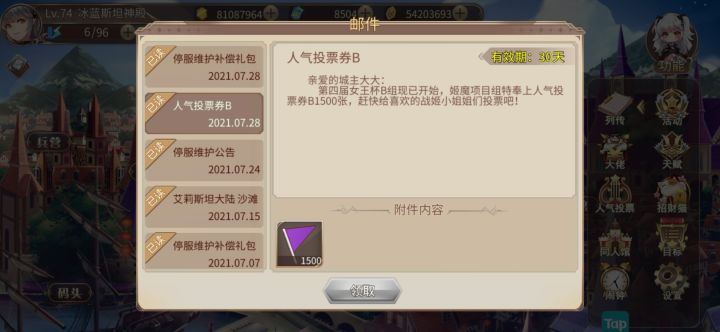 直入主题了,21号开始后到次月35号,保守一点算就是34天,按照一体力等于一票来说,34天内体力不溢出,全部换算成票大约是4900张。开活动的时候官方又“大发慈悲”的送了1500张。而按照活动票累计奖励,需要25000张才可以兑换时装。也就是说玩家要自己刷一万八千多张。