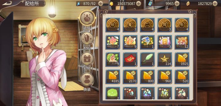 今天吃了2000的体力药水,刷剩800多,想看看剩几个字能合萌猫召唤100,结果仓库只剩几十个字,是什么情况(゜ロ゜)刚刚又发现我昨天的灵猫100抽东西全没了,这什么鬼回事。就是这些(=゚Д゚=)比如服装的箱子啊,材料的箱子这种平时没留的不见了,就很明显。